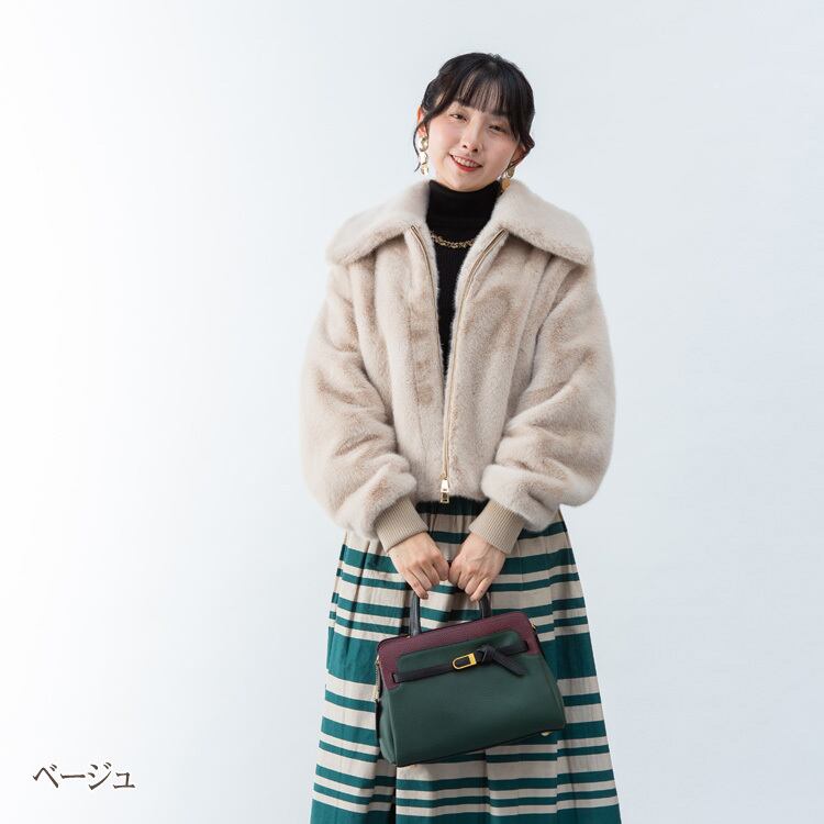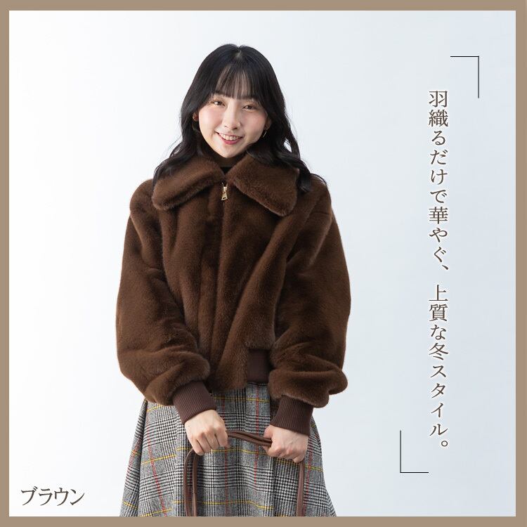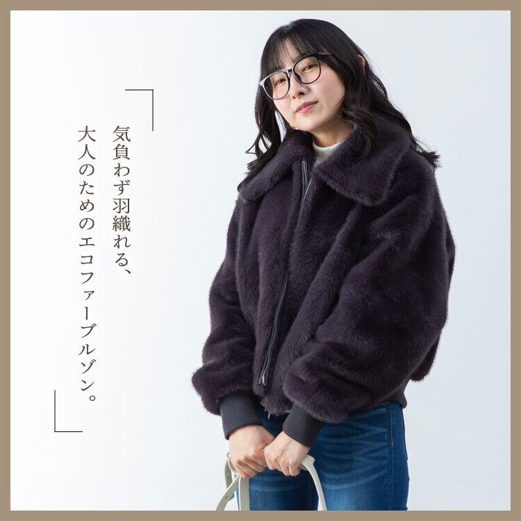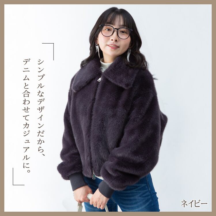 パーソナルスタイリスト コラボ エコファー ブルゾン ジャケット ミンク風 ネイビー ブラウン ベージュ レディース 送料無料 ギフト プレゼント POUT5B