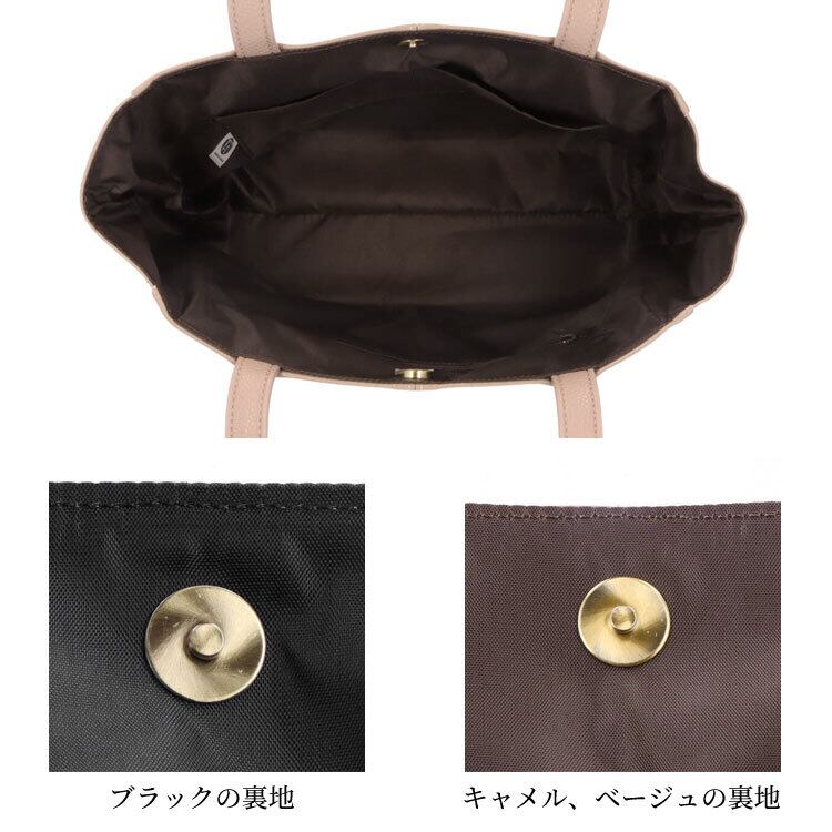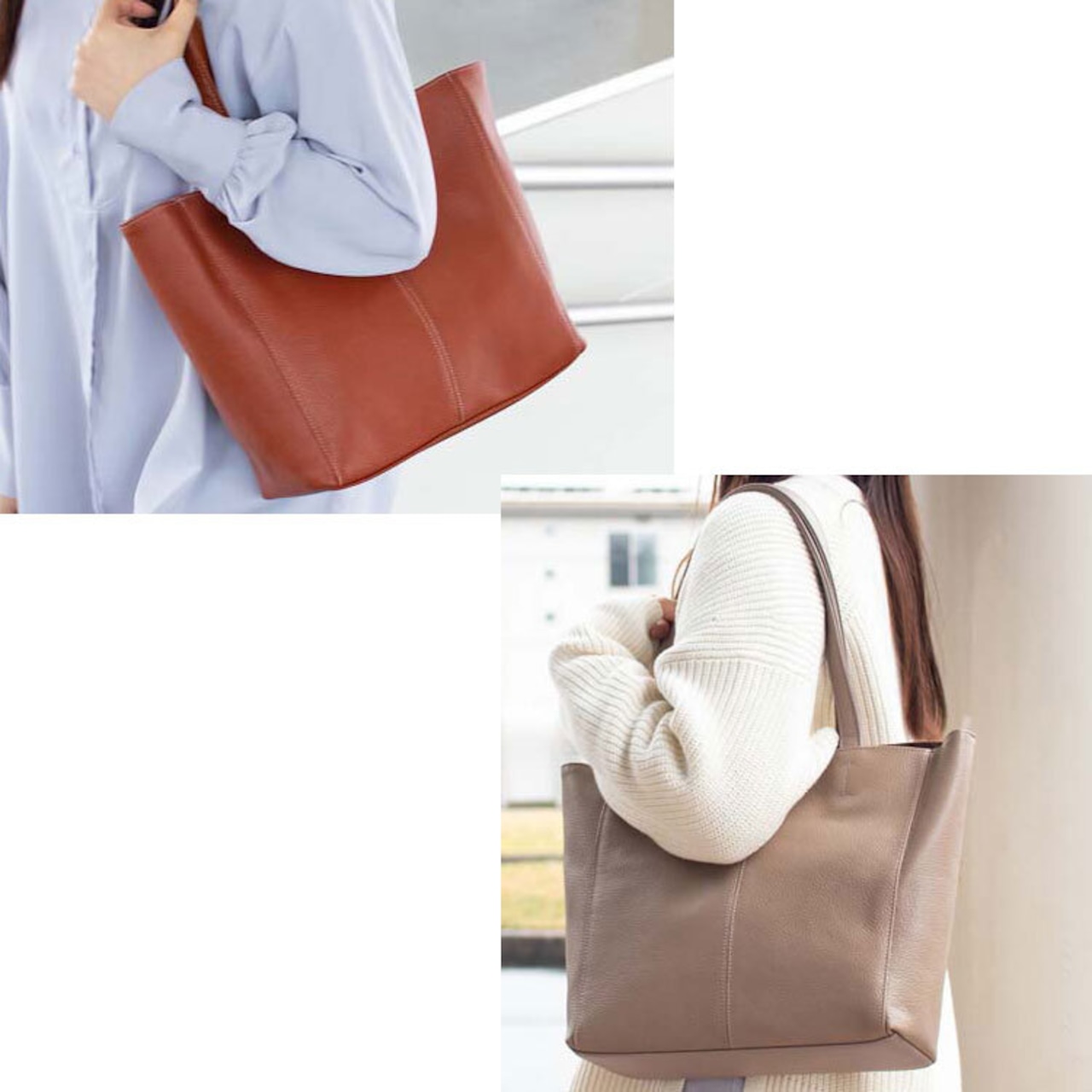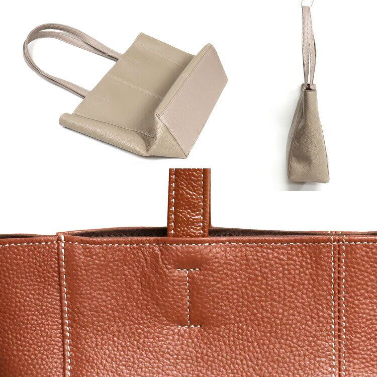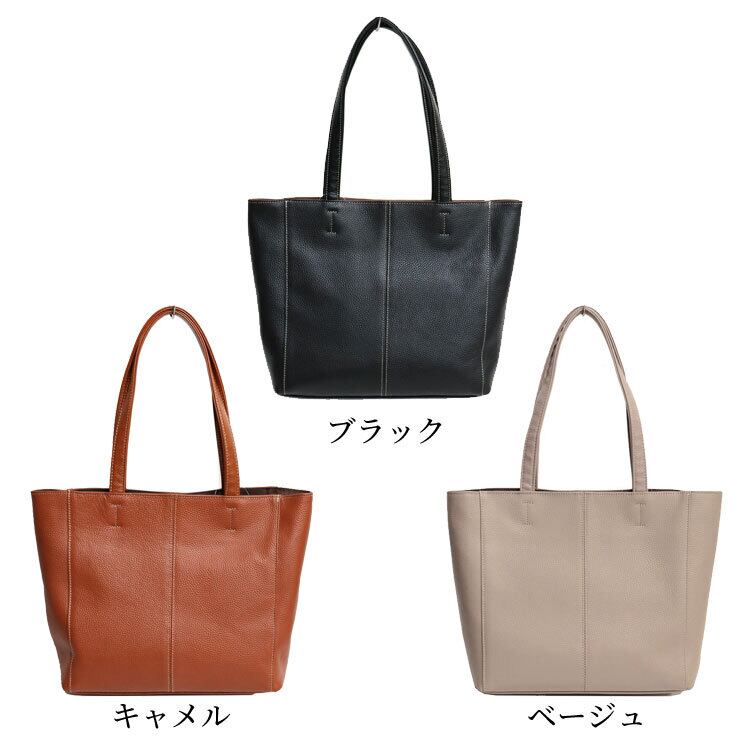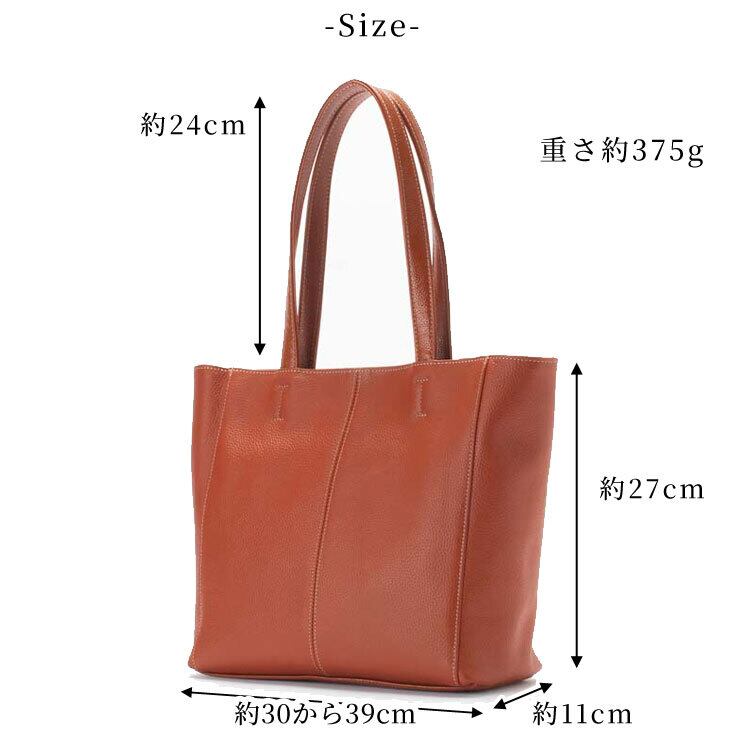 【サイズ(最大部を計測)】縦幅約27cm 横幅約30-39cm マチ幅約11cm ハンドル持ち上がり約24cm 【重さ】約375g 【内側収納】ファスナーポケット×1、オープンポケット×2 【外側収納】無し 【留め具】ファスナー 【裏地】有り 【素材】本体:牛革/底、持ち手:合成皮革/裏地:ポリエステル 【生産国】日本