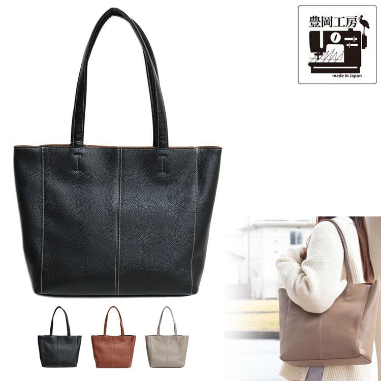 「古事記」にも登場する、柳細工の技術をルーツとする鞄の街、兵庫県豊岡市。その高度な技術を現在に受け継いでいる豊岡の地での生産にこだわる「豊岡工房」。柔らかな牛革シュリンク素材を使用した本革軽量トートバッグです。
