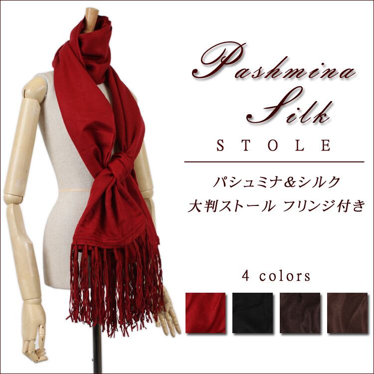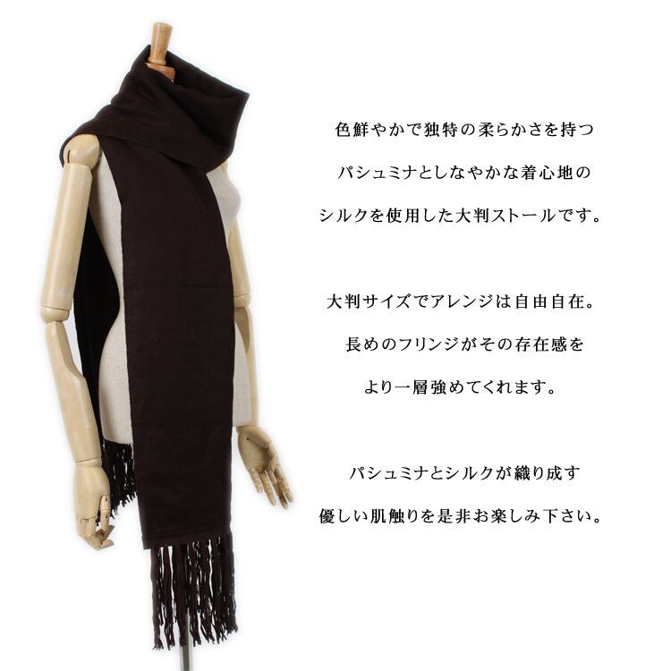 インド製 シルク パシュミナ 大判 ストール ショール 牛革フリンジ付 送料無料 レディース ギフト プレゼント 5ELFR1