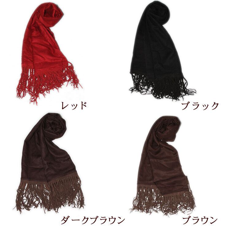 【サイズ(最大部を計測)】全長約190cm 幅約70cm フリンジ長さ約15cm 【重さ】約275g 【留め具】無し 【裏地】無し 【素材】パシュミナ70%、シルク30%、牛革(フリンジ) 【生産国】インド