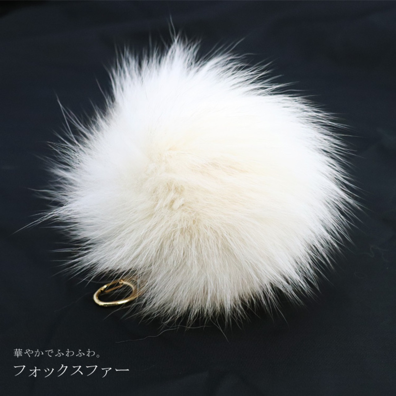 【サイズ(最大部を計測)】直径:約15cm前後(※個体差があります) 【重さ】約40g 【留め具】カラビナ金具 【素材】フォックス 【生産国】日本