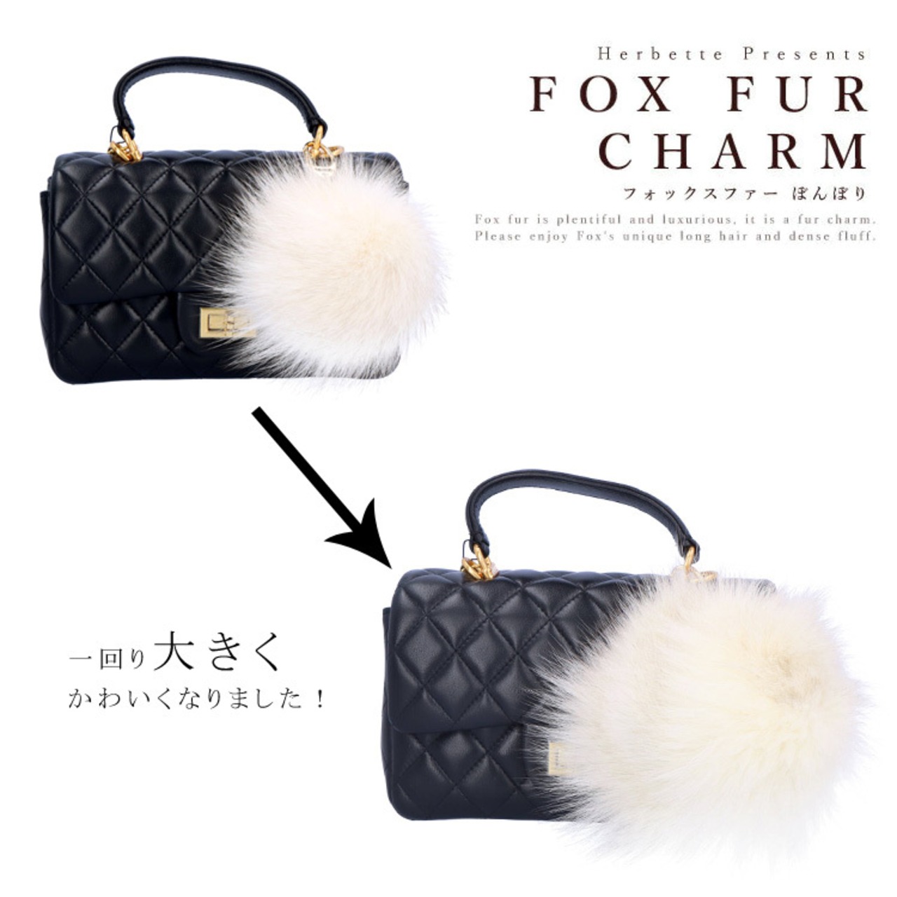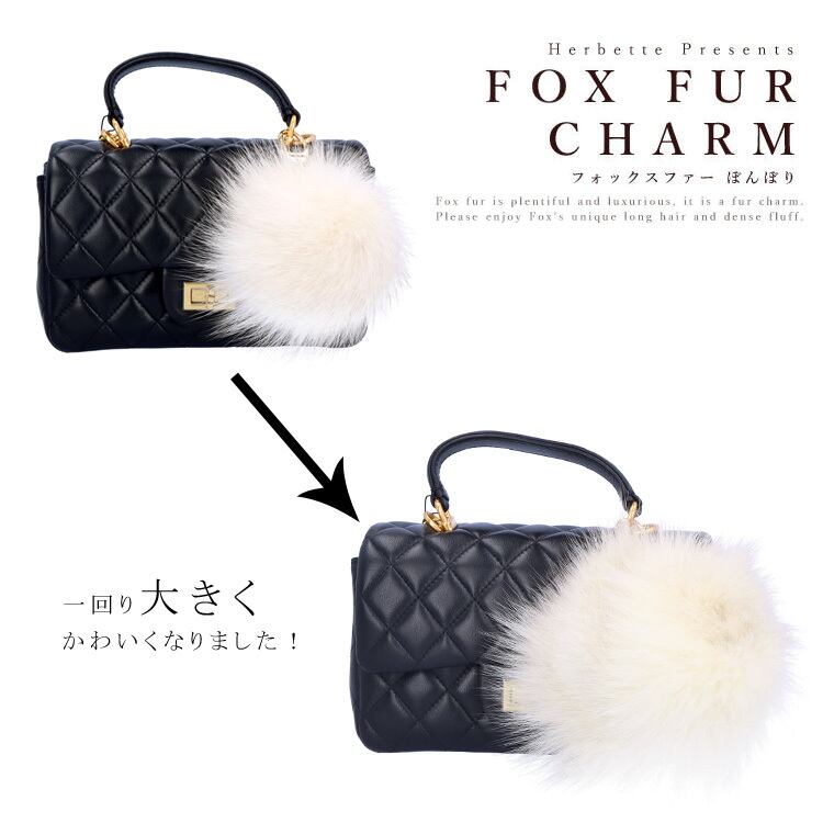 長い毛足のフォックスファーがラグジュアリーなファーチャームです。待望のビッグサイズの登場!エルベートのサスティナブルシリーズ。SDGsに貢献し、無駄なく毛皮を使うために端材からファーチャームを作成。余った部分を使っているため、大きさや毛並み、色合いに統一感はございません。リアルファーなので高級感がありつつも、価格は控えめに。毛皮アイテムを取り入れてみたい方へもおすすめのチャームです。