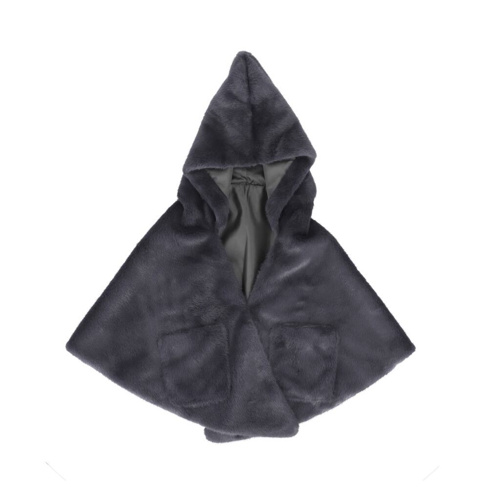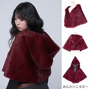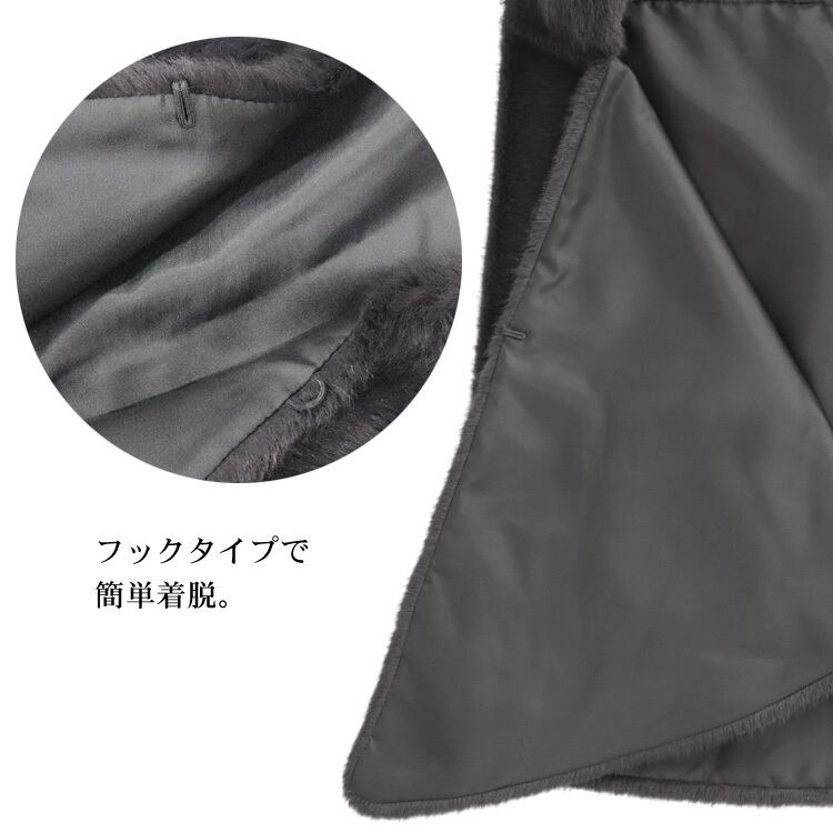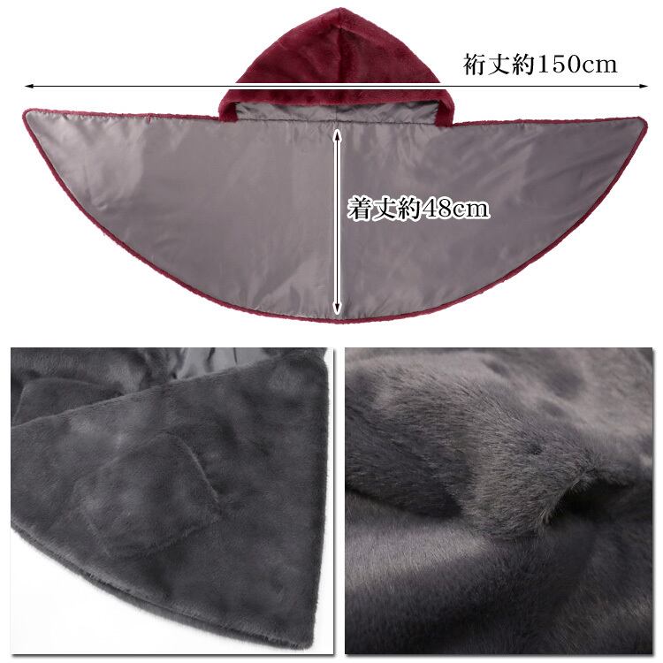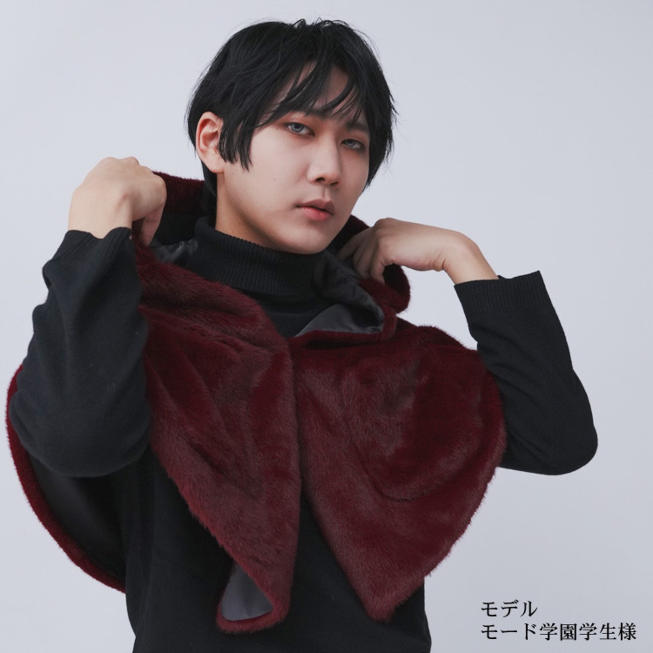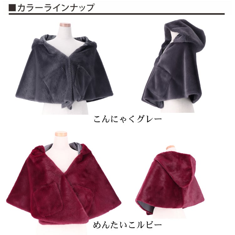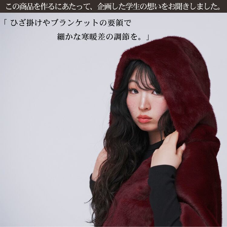 モード学園 エルベート産学企画 オリジナル商品 フードストール 2way エコファー ひざ掛け ポンチョ ストール マフラー ショート丈 グレー レッド POB301