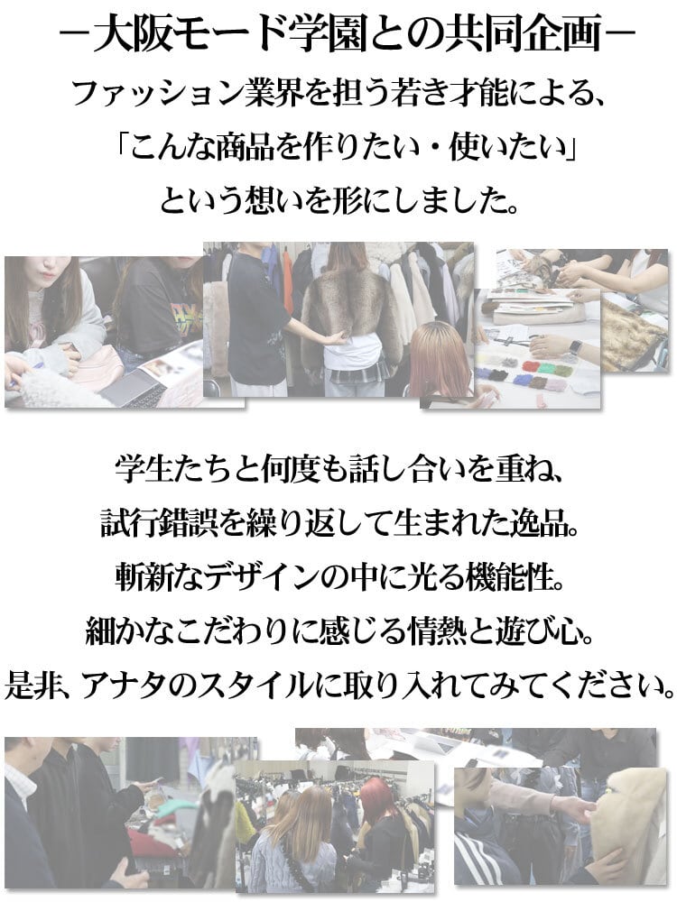 日本有数のファッション専門学校「大阪モード学園」の学生たちによる自由な発想と感性をもとに開発されたオリジナル商品。