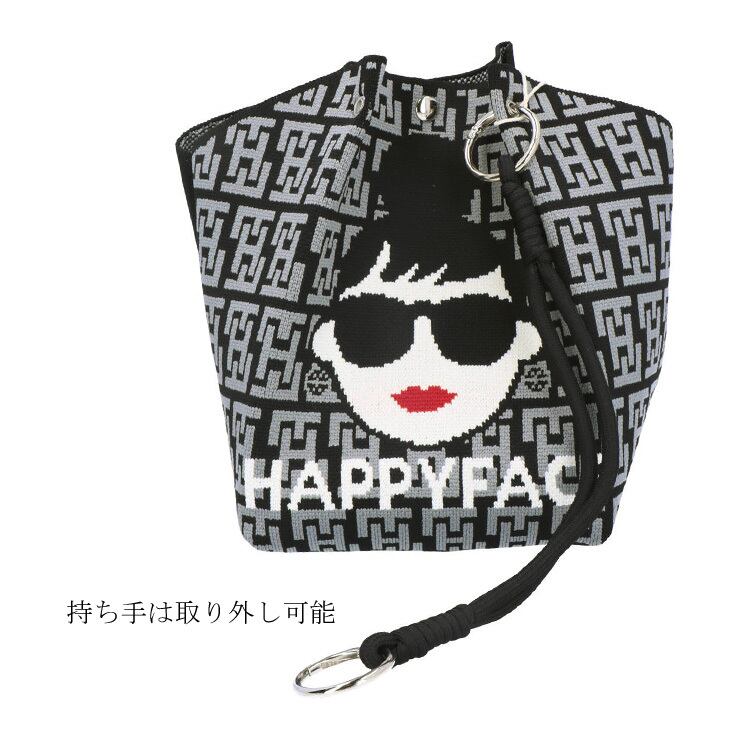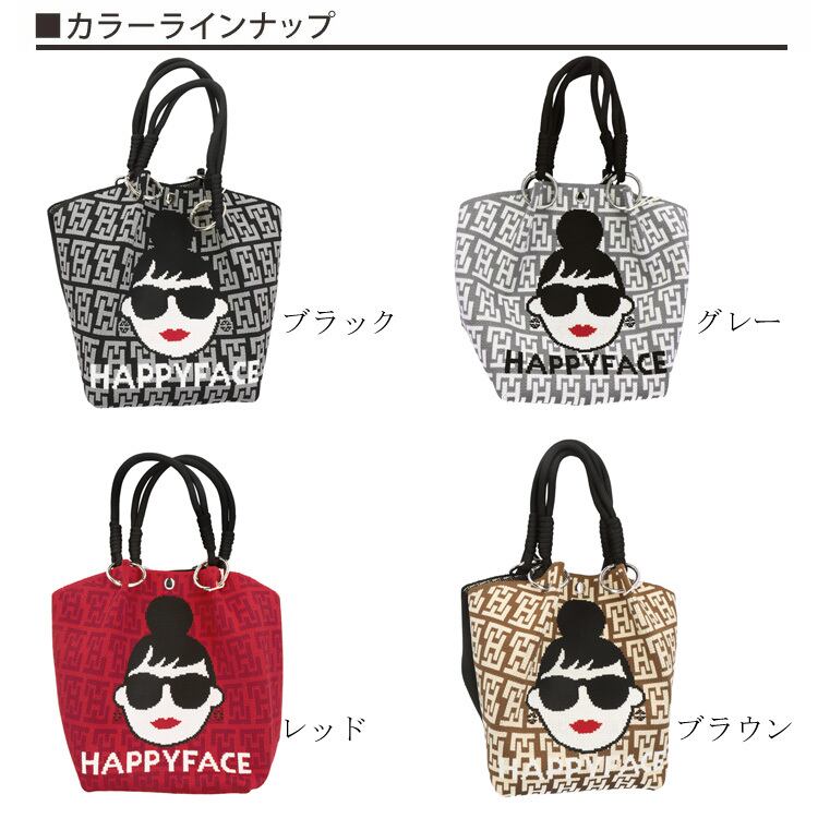 HAPPY FACE EMMA スクエアトートバッグ モノグラム ピコニット ロゴ スクエア トートバッグ サングラス LADY 軽量 マチ広 スクエアトート レディース ギフト プレゼント オシャレ かわいい 70396-03-12-42-23 ブラック グレー レッド ブラウン