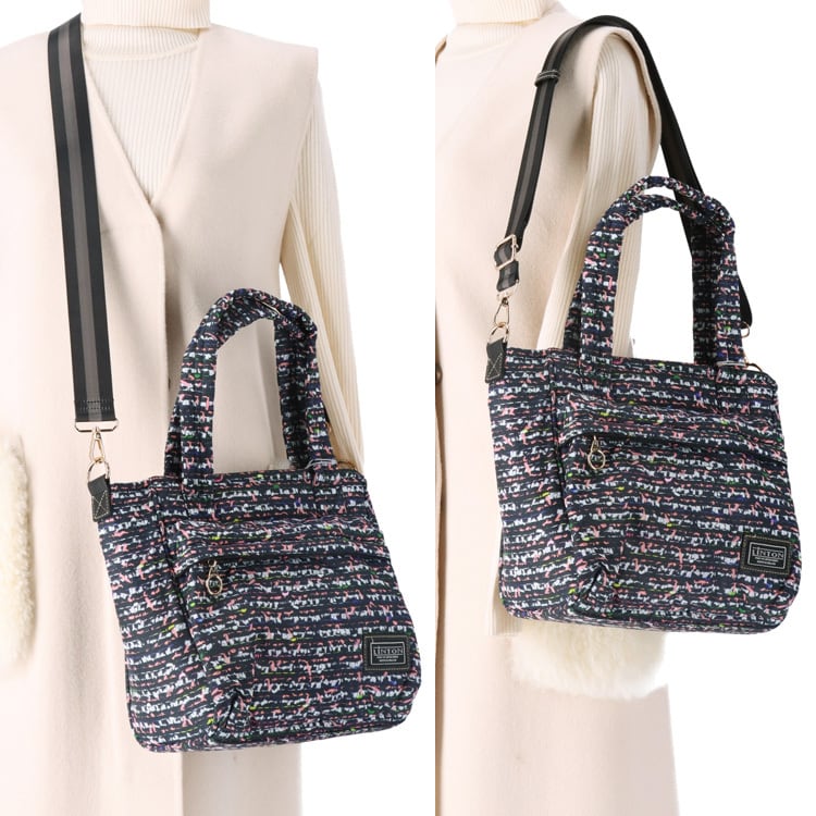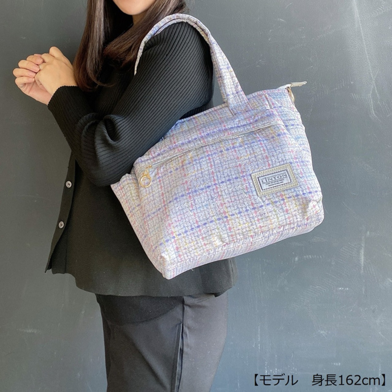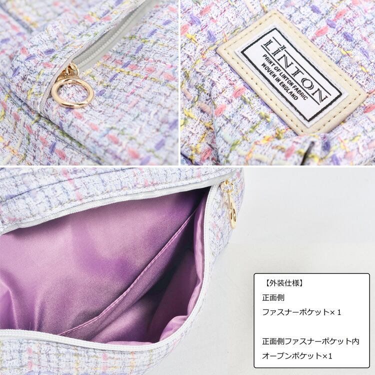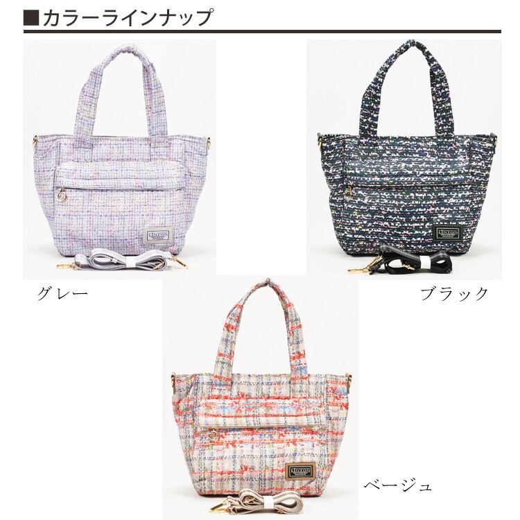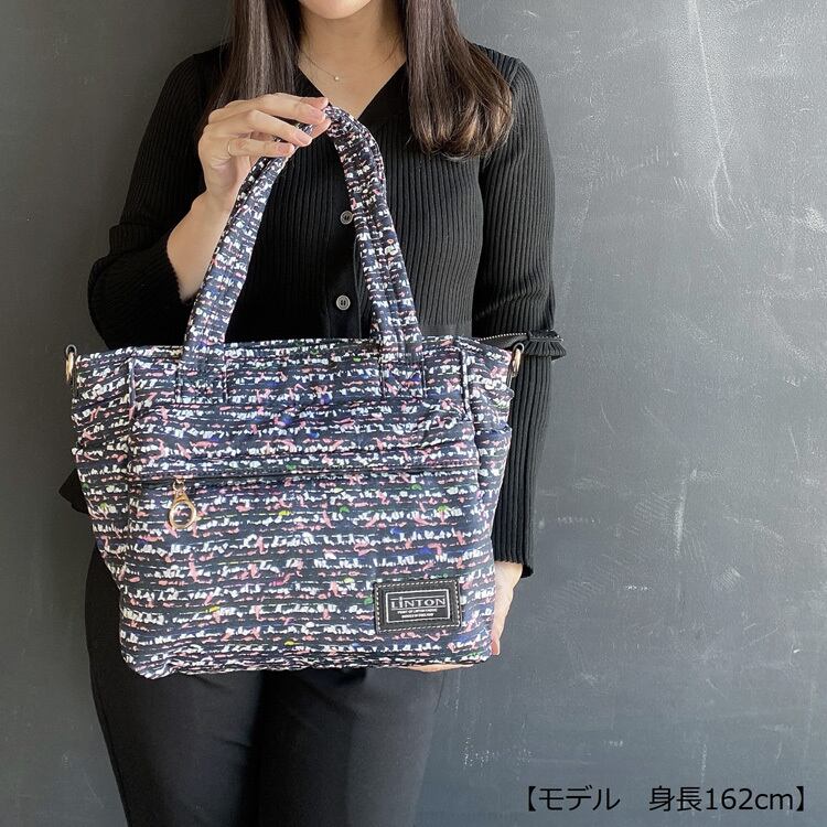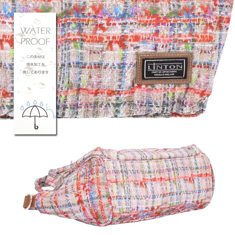 LINTON TEEEDS 2way ショルダーバッグ ハンドバッグ ツイード プリント 撥水 トートバッグ リントン ショルダー レディース ギフト プレゼント 送料無料 40852 ブラック グレー ベージュ PO852N