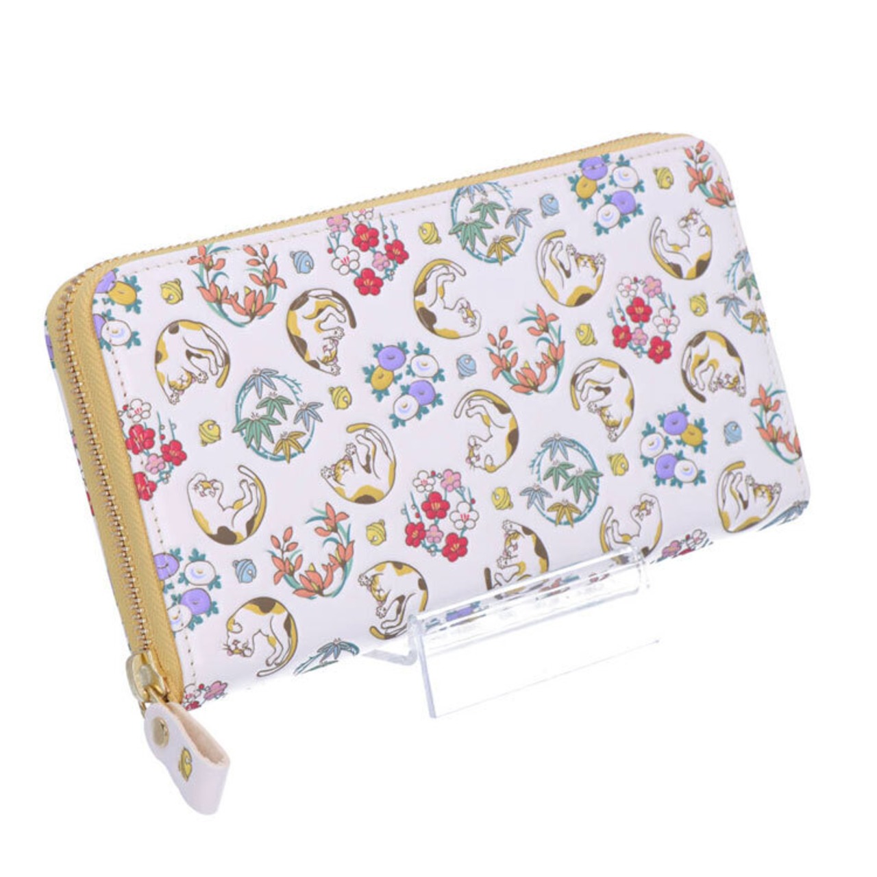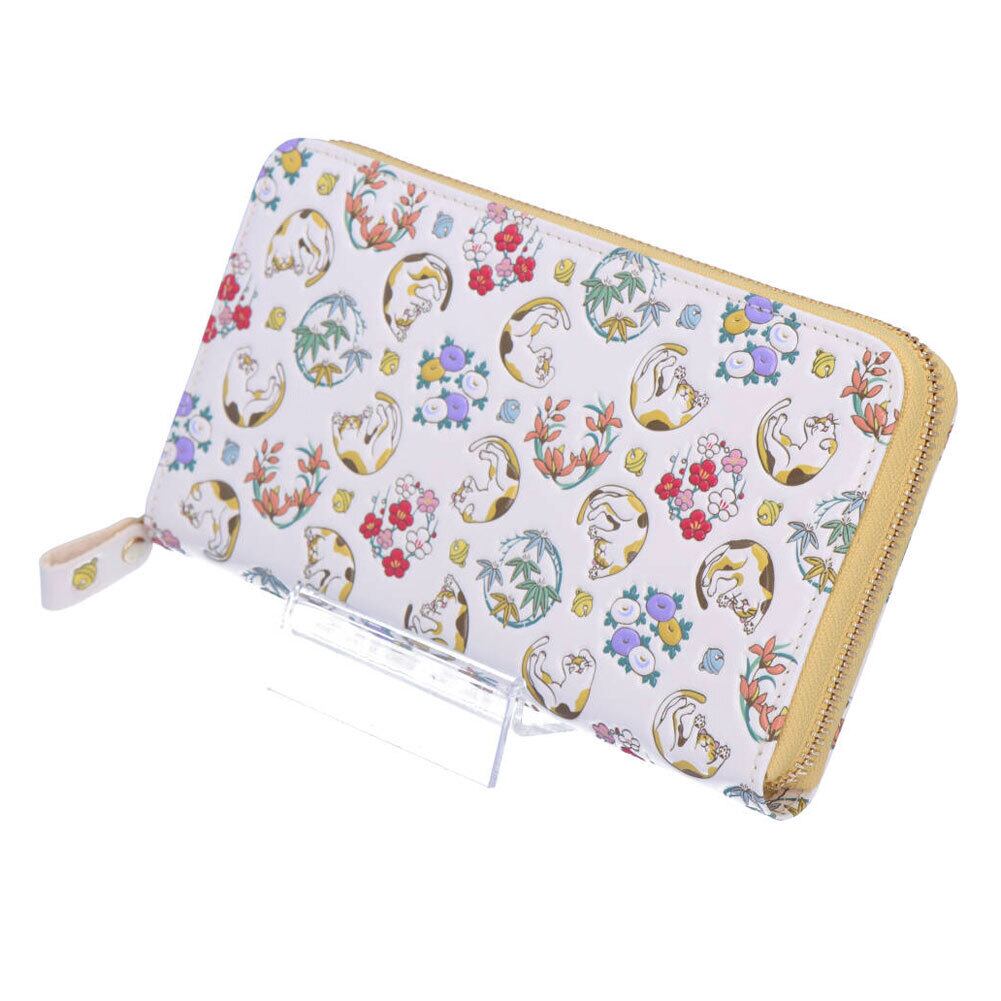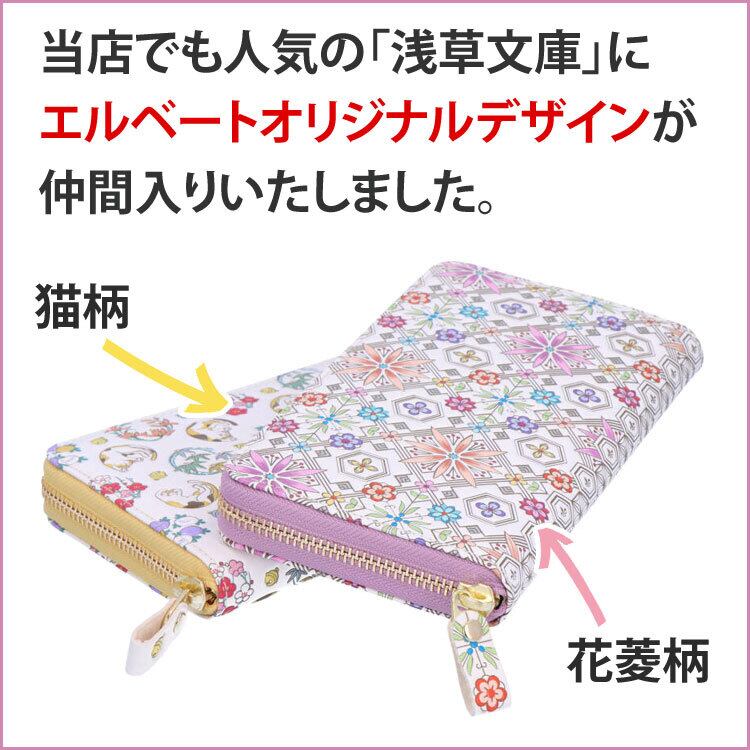 【お種銭付】 【 浅草文庫 エルベート 】コラボオリジナルデザイン 長財布 猫 ネコ 柄 三毛 ミケ ラウンドファスナー ラウンドジップ 財布 サイフ 浅草 文庫革 江戸小紋 送料無料 レザー 牛革 レディース ギフト プレゼント 大容量 CLNEN2