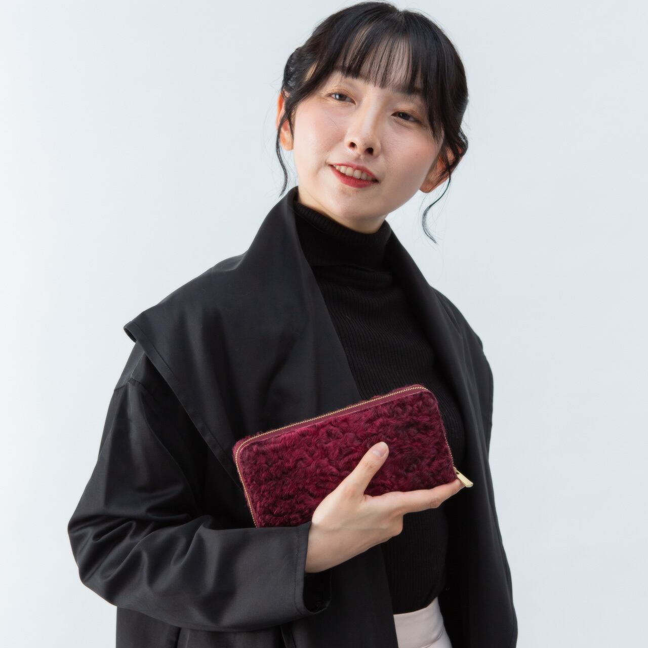 希少な高級毛皮カラクルラムを使用し、日本の熟練職人が一点一点丁寧に仕立てたラグジュアリーな長財布です。カラクルラムは、波打つような独特の光沢と繊細なカールが特徴。自然が生み出す美しい毛並みは、唯一無二の表情を持ちます。素材の美しさと加工の難しさを乗り越え、財布としての機能性と芸術性を両立。内装には上質なイタリアンレザーを採用、細部にまで妥協なく仕上げています。毛皮の芸術性と革製品の実用性が融合した逸品。ご自身用にはもちろん、大切な方への特別なギフトにもおすすめです。