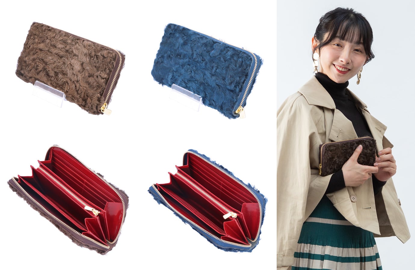 【お種銭付】 ファーのお財布を作りたい 高級カラクルラムファーの日本製 長財布 ハンドメイド ラウンドファスナー 毛皮 レディース ギフト プレゼント LM3851