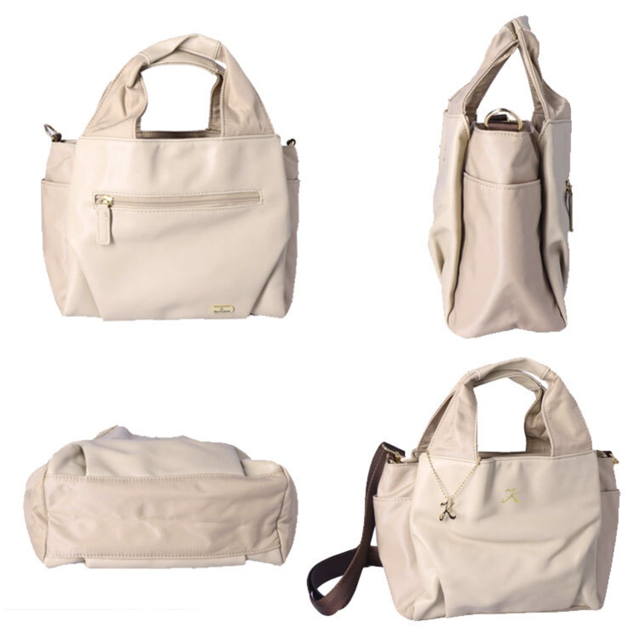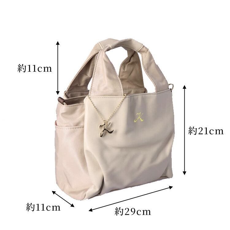 気品あるデザインと機能性を兼ね備えたブランド「ユリ・コジマ」から、前後で違うデザインが楽しめるハンドバッグです。