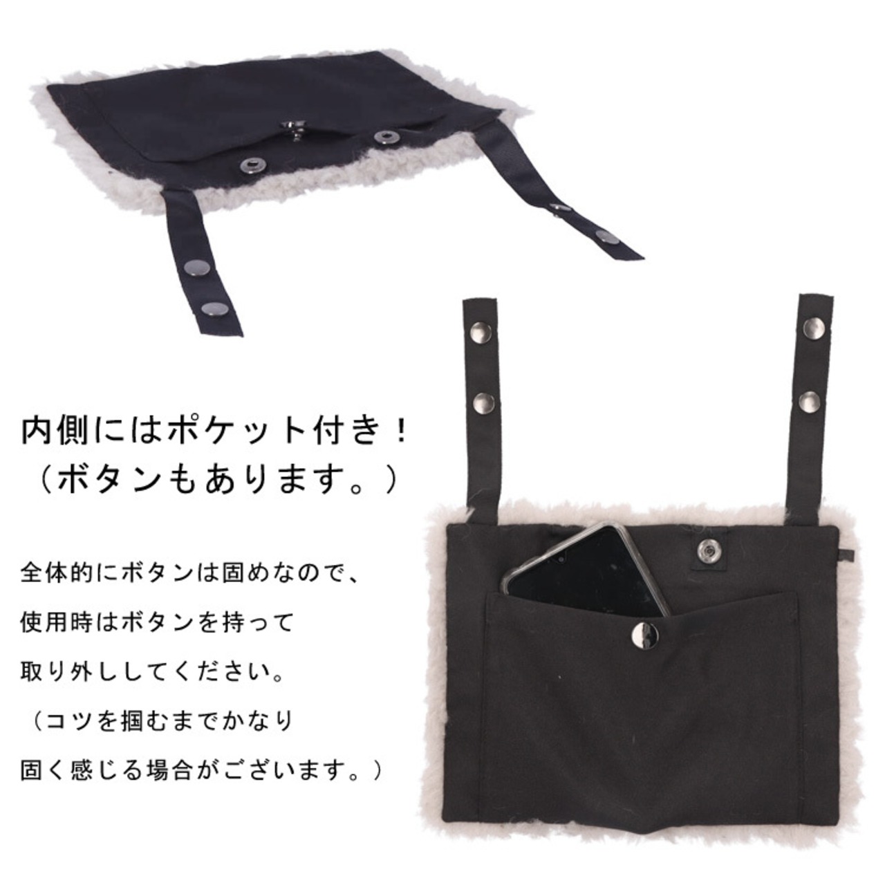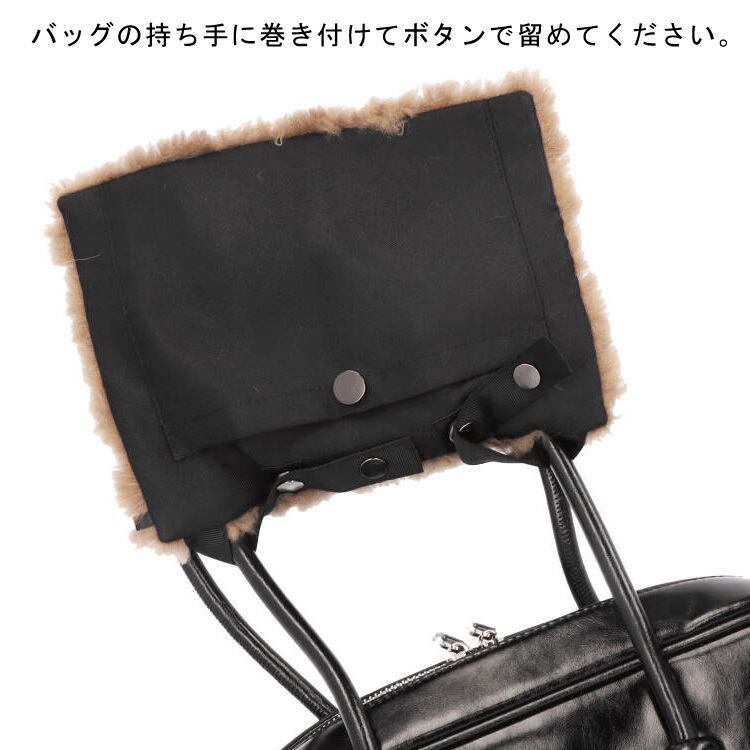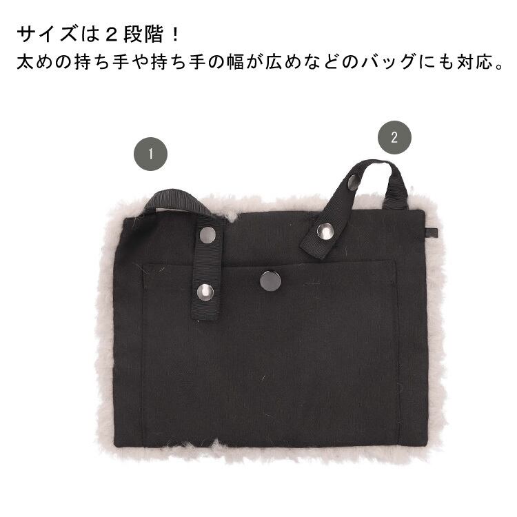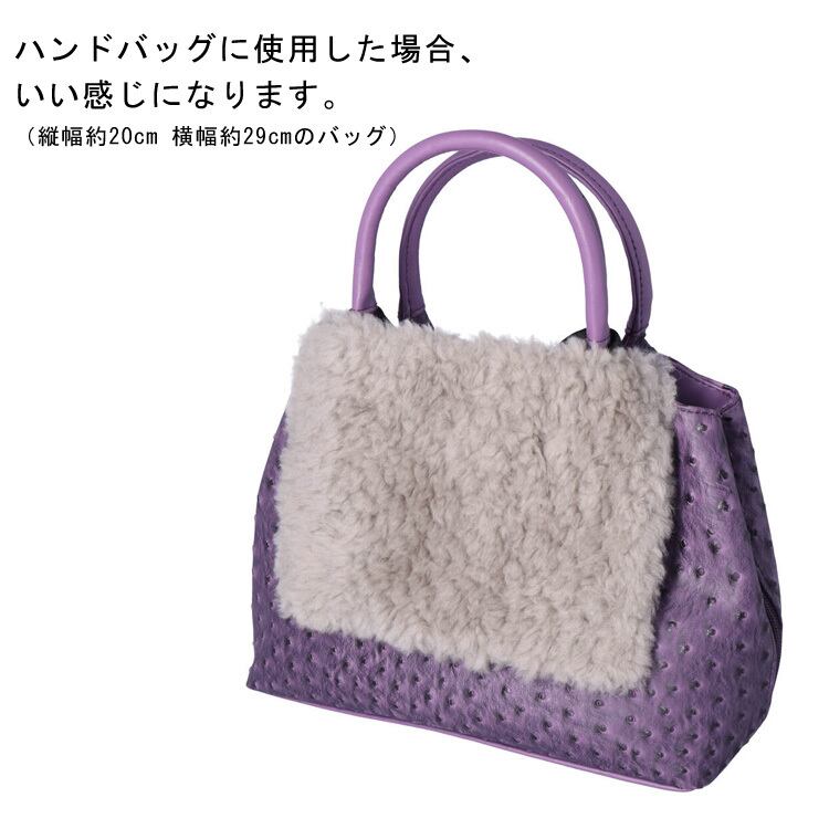 ラグジュアリーなくるくるラム風エコファーのバッグ用パーツです。お気に入りのバッグを冬アレンジなどはいかがでしょうか。秋冬に買い替えなくてもファーバッグに変身します。鞄の持ち手にボタンで取り付けるだけなのでとっても簡単。(ボタンは固めなので、生地を傷めないよう、ボタンを持って取り外ししてください。)内側にはポケット付きなのでティッシュなど小物の収納にも便利。ファー素材のふんわりとした質感が、バッグ全体に暖かさを加えます。