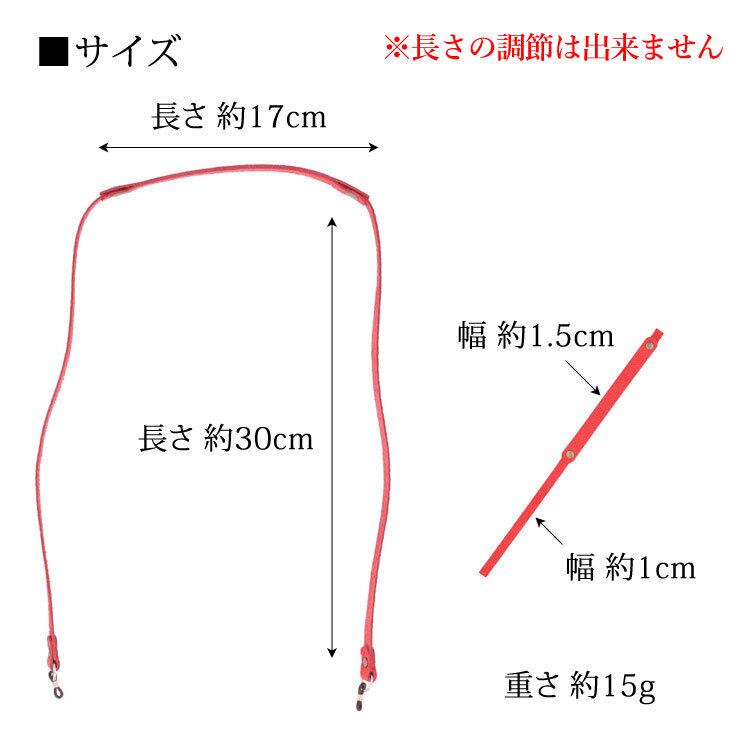 【サイズ(最大部を計測)】全長約77cm 幅約1cm(首部分幅約1.5cm) ※長さの調整は出来ません。 【重さ】約15g 【素材】牛革 【生産国】日本