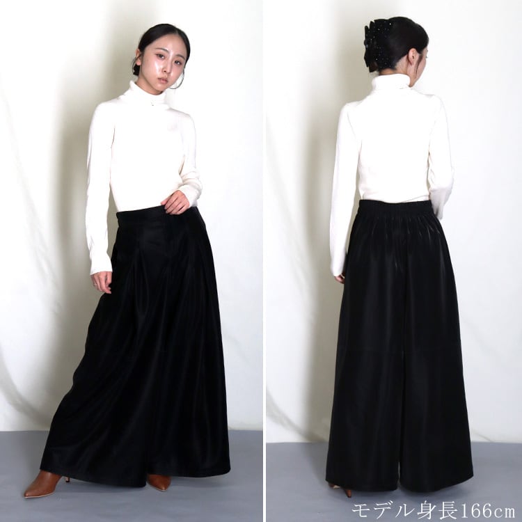 ベルベット レザー キュロット ロング ワイドパンツ スカート ブラック シンプル 無地 黒 フレア パンツ ラム ベルベットレザー 送料無料 レディース ギフト プレゼント LMBPA1