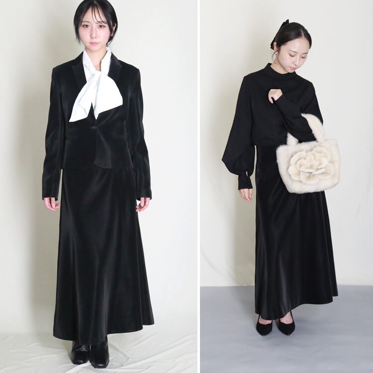 スタンダードなラムのレザースカートをワンランクアップ。本革の中でも上質で幅広い層に人気のラム(羊)レザーを使用。ベルベット加工された上品な光沢の新しい素材。フレアでエレガントにしつつ、バックスリットで女性らしいロングスカートに仕上げました。スタンダードなデザインなので、レザーの質にはこだわりたいもの。上品かつシンプルに、でも使いやすい、大人な着こなしが完成。