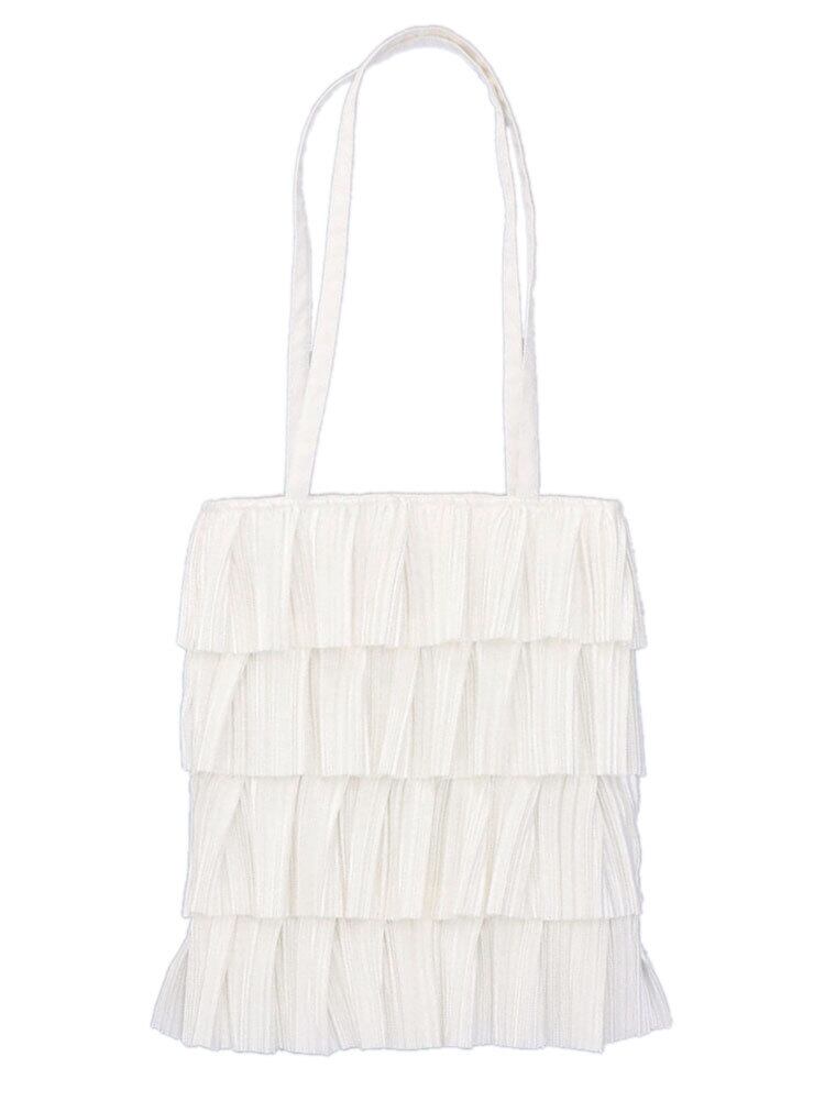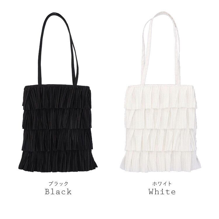 【セール】 プリーツ バッグ ティアード ハンドバッグ トートバッグ ショルダー フリル 手提げ ブラック ホワイト 肩掛け マチなし 軽量 鞄 レディース ギフト プレゼント 2904 PO2904