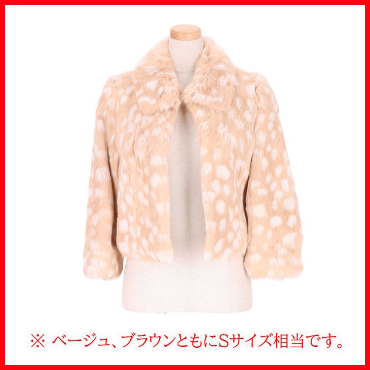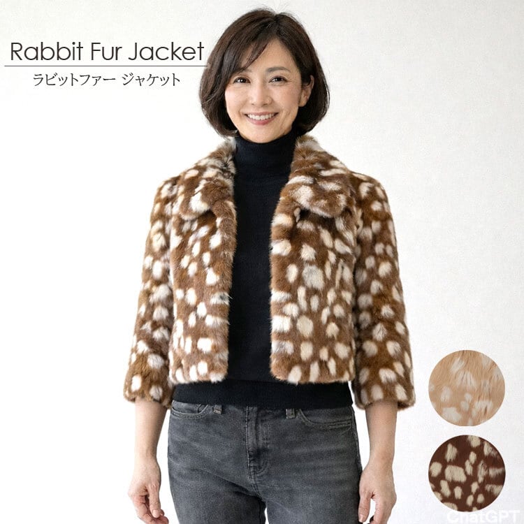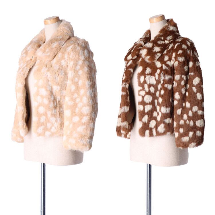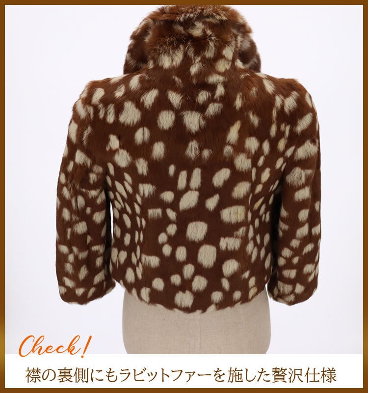 ラビットファー ジャケット アニマル柄 ショート丈 8分袖 ブラウン ベージュ レディース ギフト プレゼント RBF554