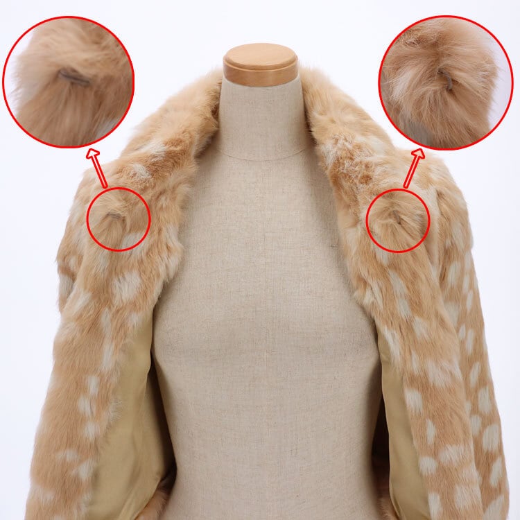 【サイズ(最大部を計測)】肩幅約32cm 身幅約40cm 着丈約40cm 袖丈約46cm 【重さ】約500g 【内側ポケット】無し 【外側ポケット】無し 【留め具】ホック×1 【裏地】有り 【素材】ラビット 【生産国】中国