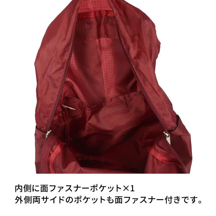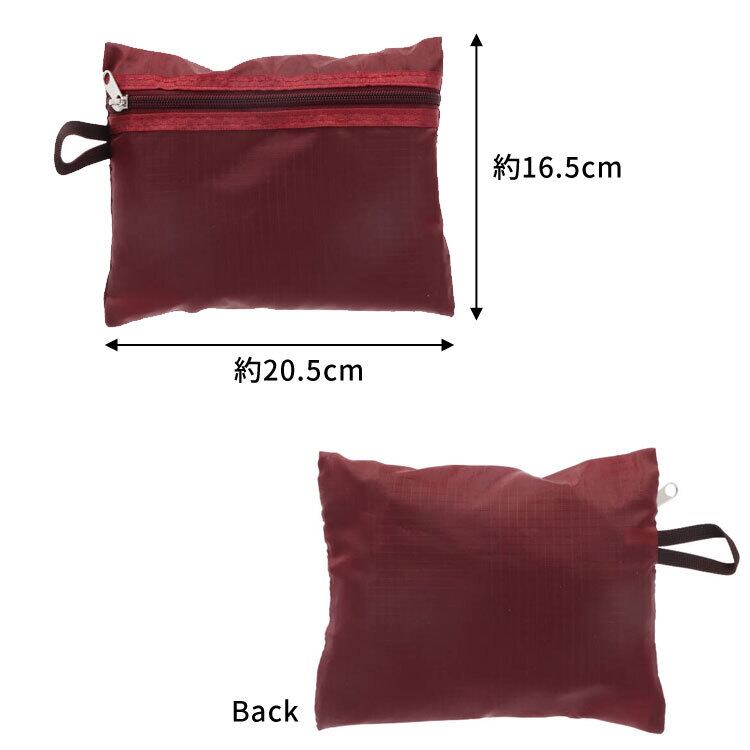 【サイズ(最大部を計測)】使用時:縦幅約40cm 横幅約27cm マチ約13cm / ポーチ収納時:縦幅約16.5cm 横幅約20.5 厚み約4cm【重さ】約140g 【内側収納】面ファスナーポケット×1 【外側収納】サイド面ファスナーポケット×各1 【留め具】ファスナー 【素材】ポリエステル 【生産国】中国
