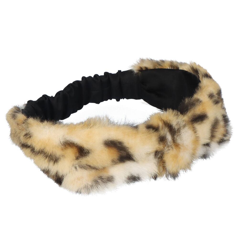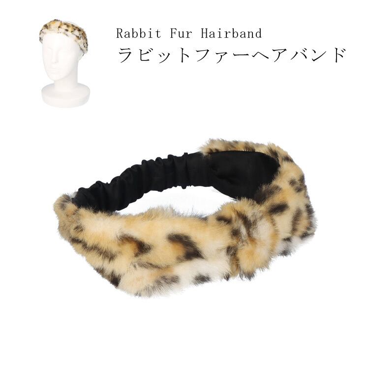 ラビット ファー ヘアバンド アニマル柄 リボン風ギャザー ターバン ヘッドバンド カチューシャ ヒョウ柄 レオパード レディース ギフト プレゼント RBKAT1
