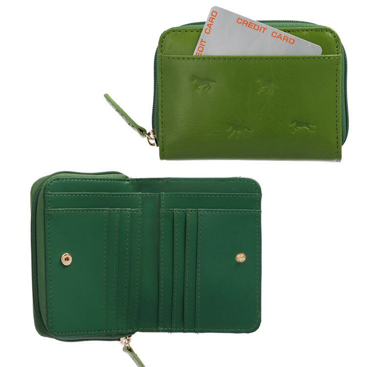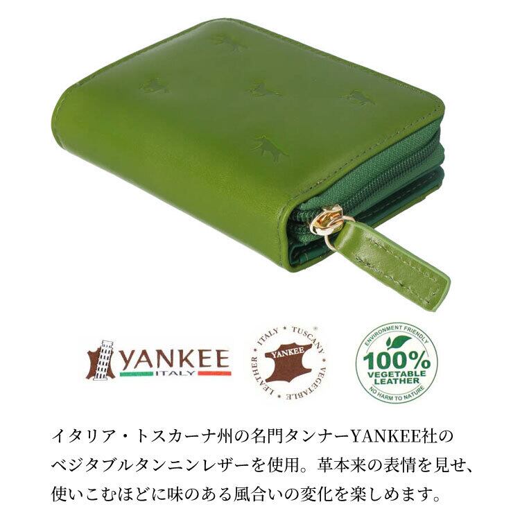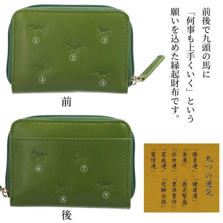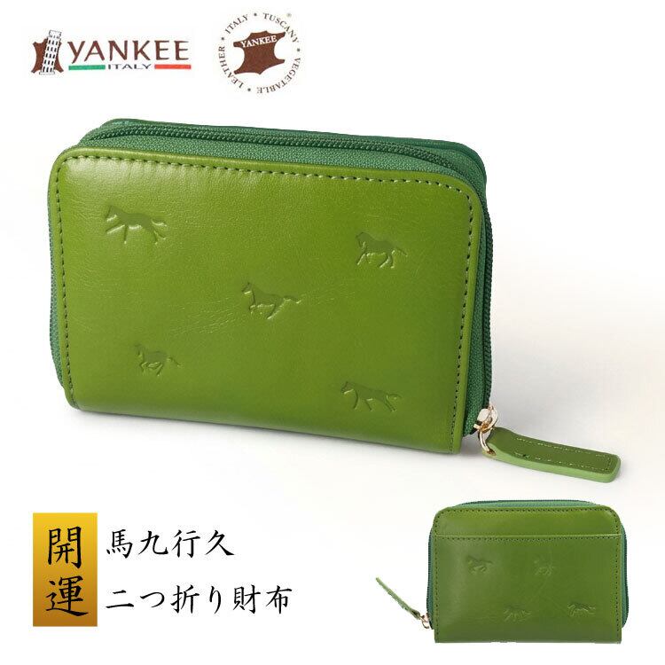 【お種銭付】 二つ折り財布 馬九行久 コインが分けられる 6059 折り財布 コンパクト 開運 牛革 レザー YANKEE社 タンニン ヌメ革 ラウンドファスナー グリーン メンズ レディース ギフト プレゼント CW6059
