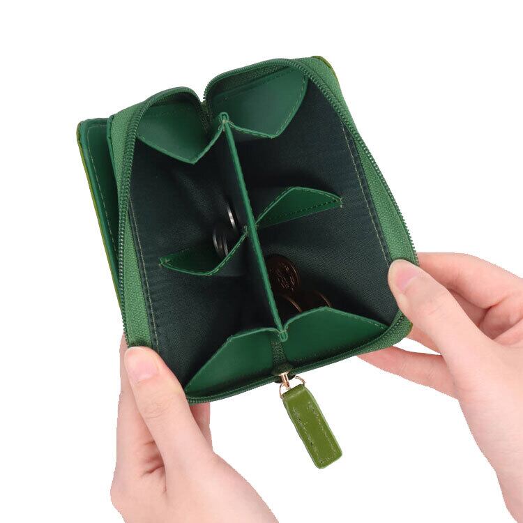 イタリアンレザーのコインが分けられる二つ折り財布。九つの運気「勝負運」「金運」「出世運」「家庭運」「愛情運」「健康運」「商売繁盛」「豊漁豊作」「受験合格」を込めて。