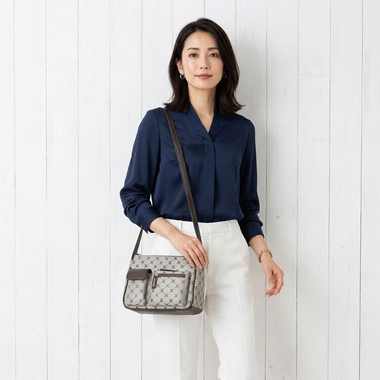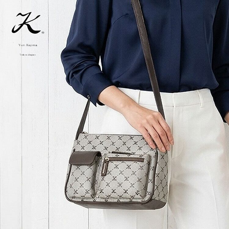 気品あるデザインと機能性を兼ね備えたブランド「ユリ・コジマ」から、持ちやすい大きさのはっ水ショルダーバッグです。