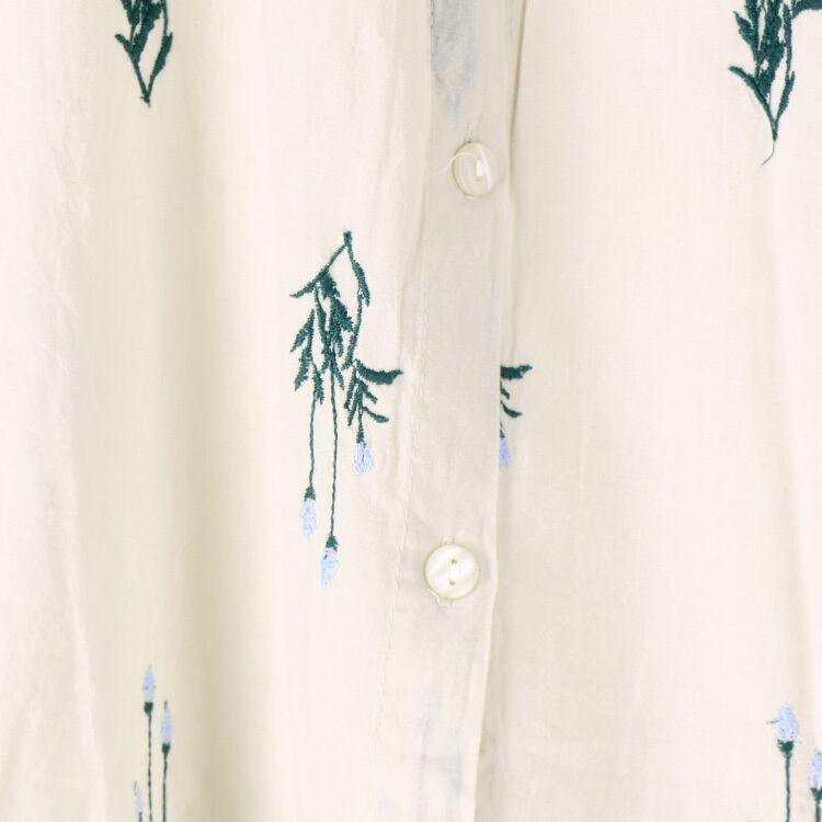 ラベンダーのような刺繍を着心地のいいキャンブリック素材にのせた大人シックなワンピース。コーディネートしやすい、合わせやすい色とIライン。動きやすさとエレガントさを両立するロング丈。まっすぐなシルエットで軽やかに見せてくれます。ノースリーブなので夏場でもさらっと着用いただけます。透け感があるので、オシャレな重ね着にぴったりです。