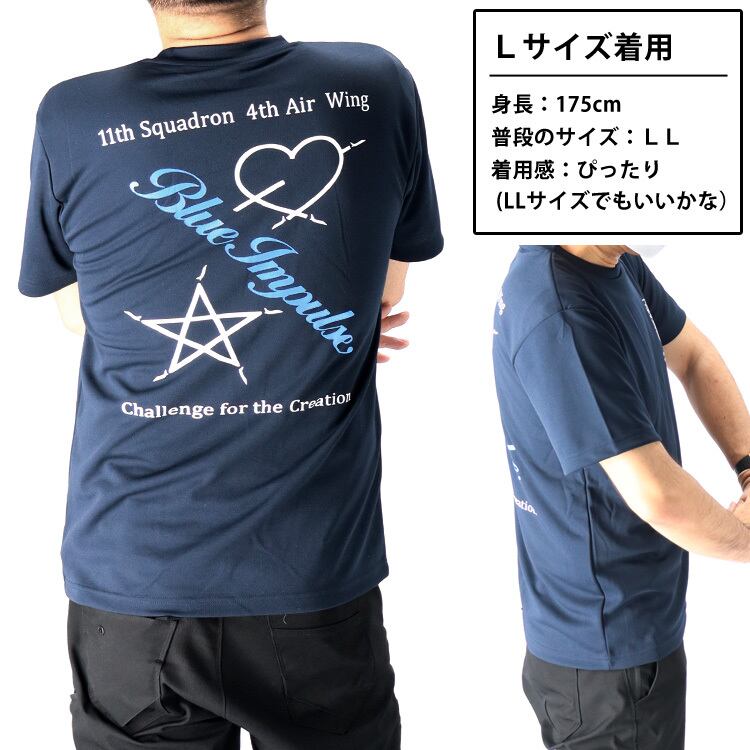 ドライTシャツ ブルーインパルス 基地ショップ限定 Tシャツ 航空自衛隊 自衛隊 グッズ 半袖 エンブレム オリジナル 紺 ネイビー 速乾 吸水 アクロバット飛行 展示飛行 正規品 防衛省 ワンポイント バックプリント メンズ ユニセックス メッシュ ギフト プレゼント POBI01