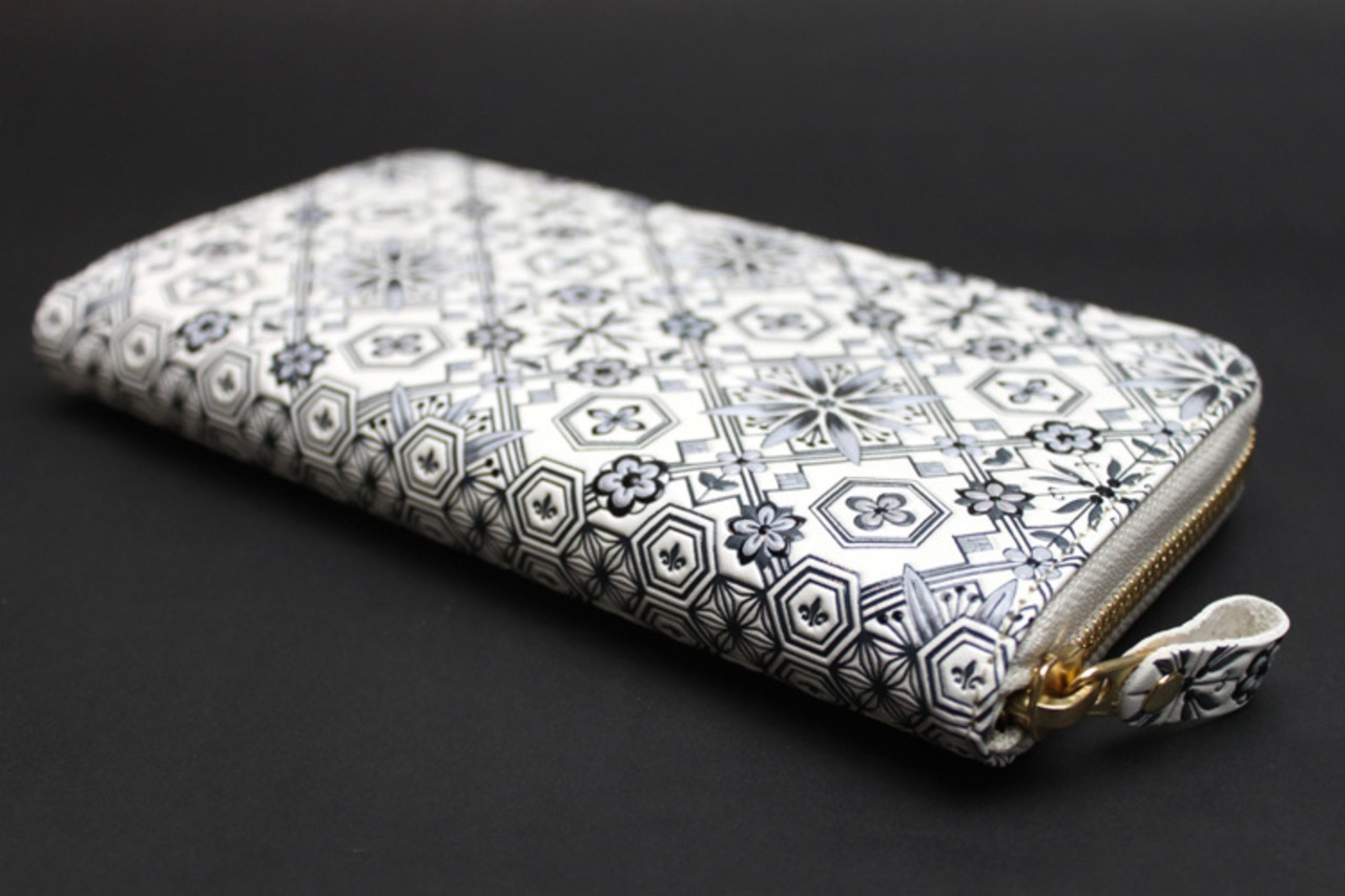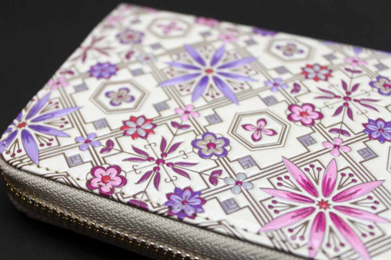 【 浅草文庫 】友禅染 長財布 花菱 財布 ラウンドファスナー 文庫革 江戸小紋 CLHAN1