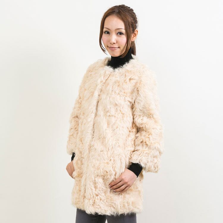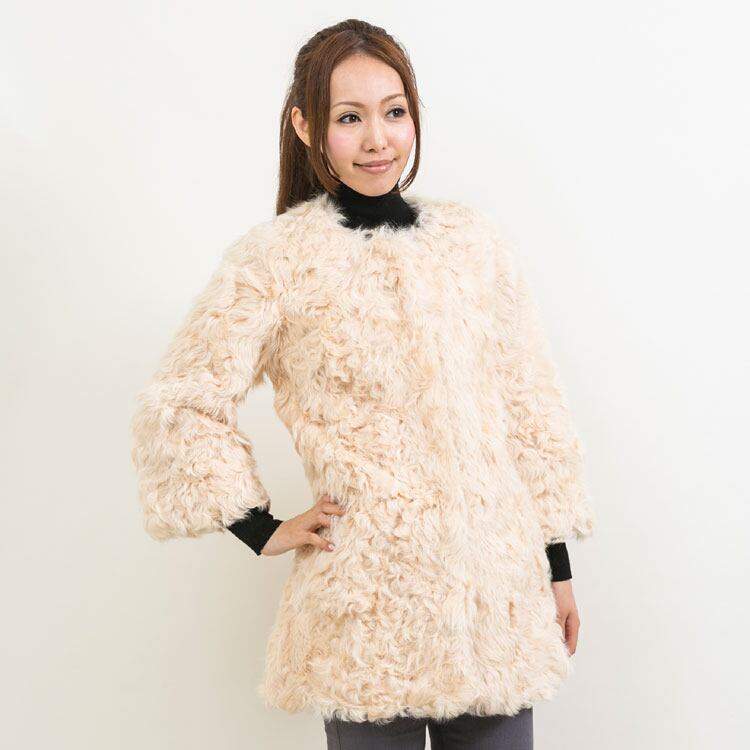 カルガンラム ファー ハーフコート ベージュ 送料無料 レディース ギフト プレゼント