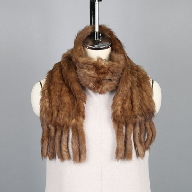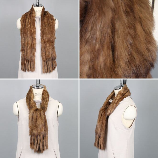 母の日 / ギフト / プレゼント / セール / 敬老の日 / 品のあるブラウンナチュラルカラーが美しい、高級素材セーブルのファーマフラー。ニッティング(編み込み)によりフィットして、ファーの柔らかさ・暖かさをより実感できます。