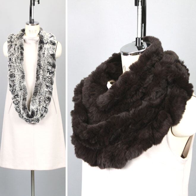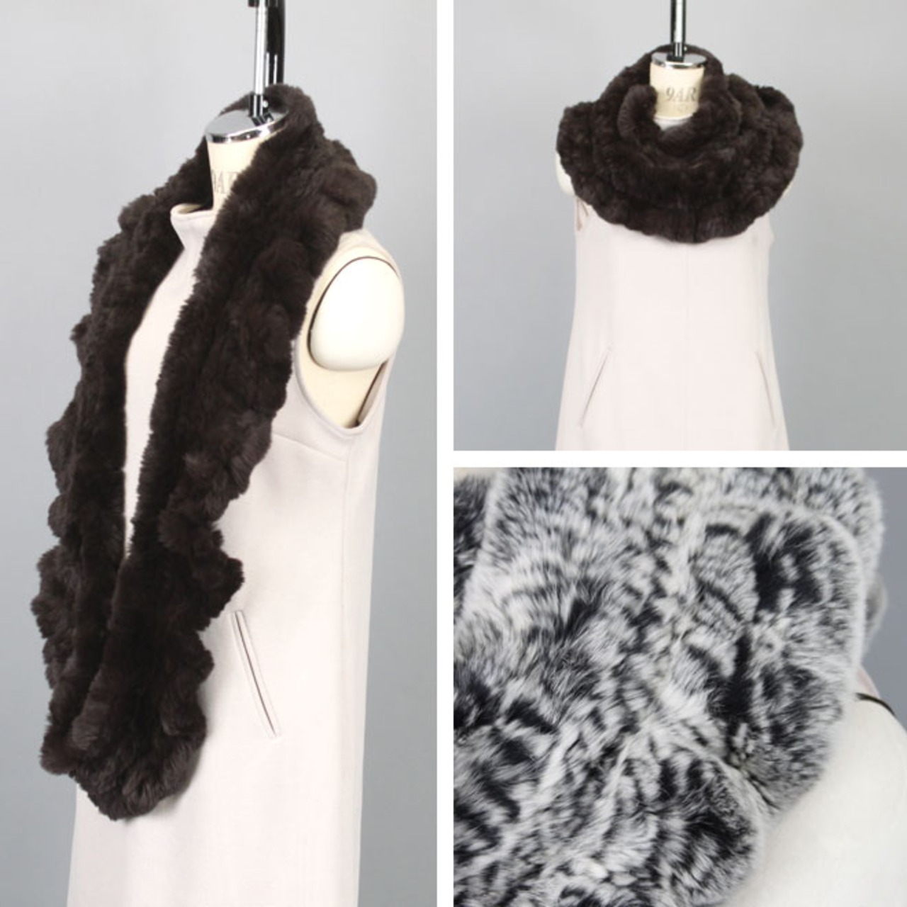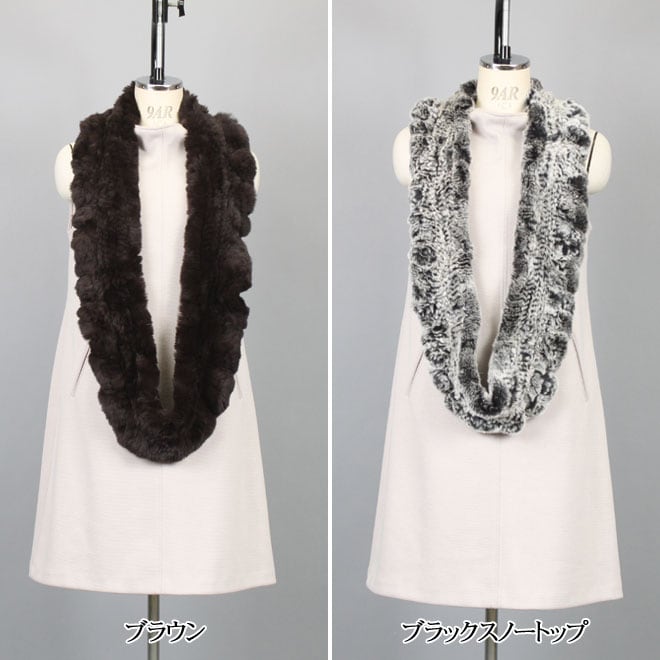 輪っか状のスヌードタイプのラビットファーマフラーです。長さがある為、そのまま首に掛けるほか、2重巻きも可能です。