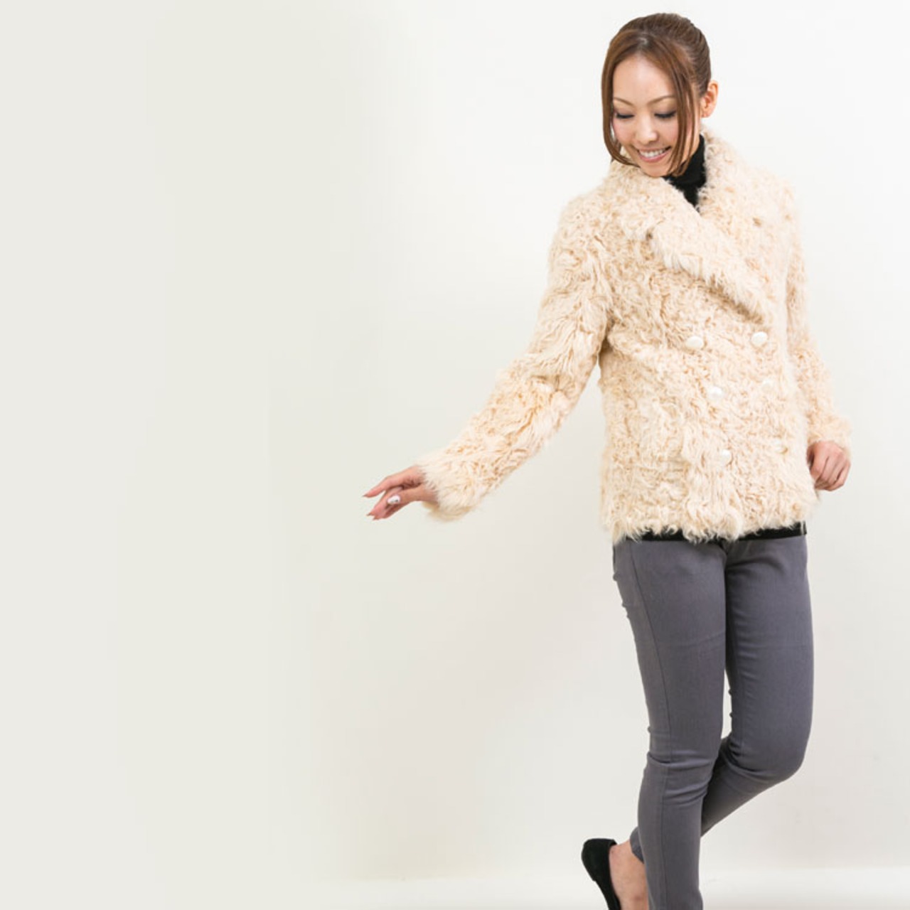 くるくるのカールが可愛らしいカルガンラムを全面に使用した、贅沢なテーラードファージャケットです。ファーの淡い光沢も上品。