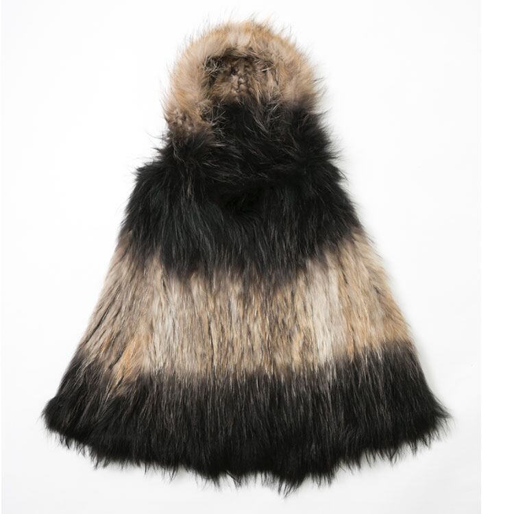 ラクーン 編み込み ファー ポンチョ フード付 送料無料 レディース ギフト プレゼント