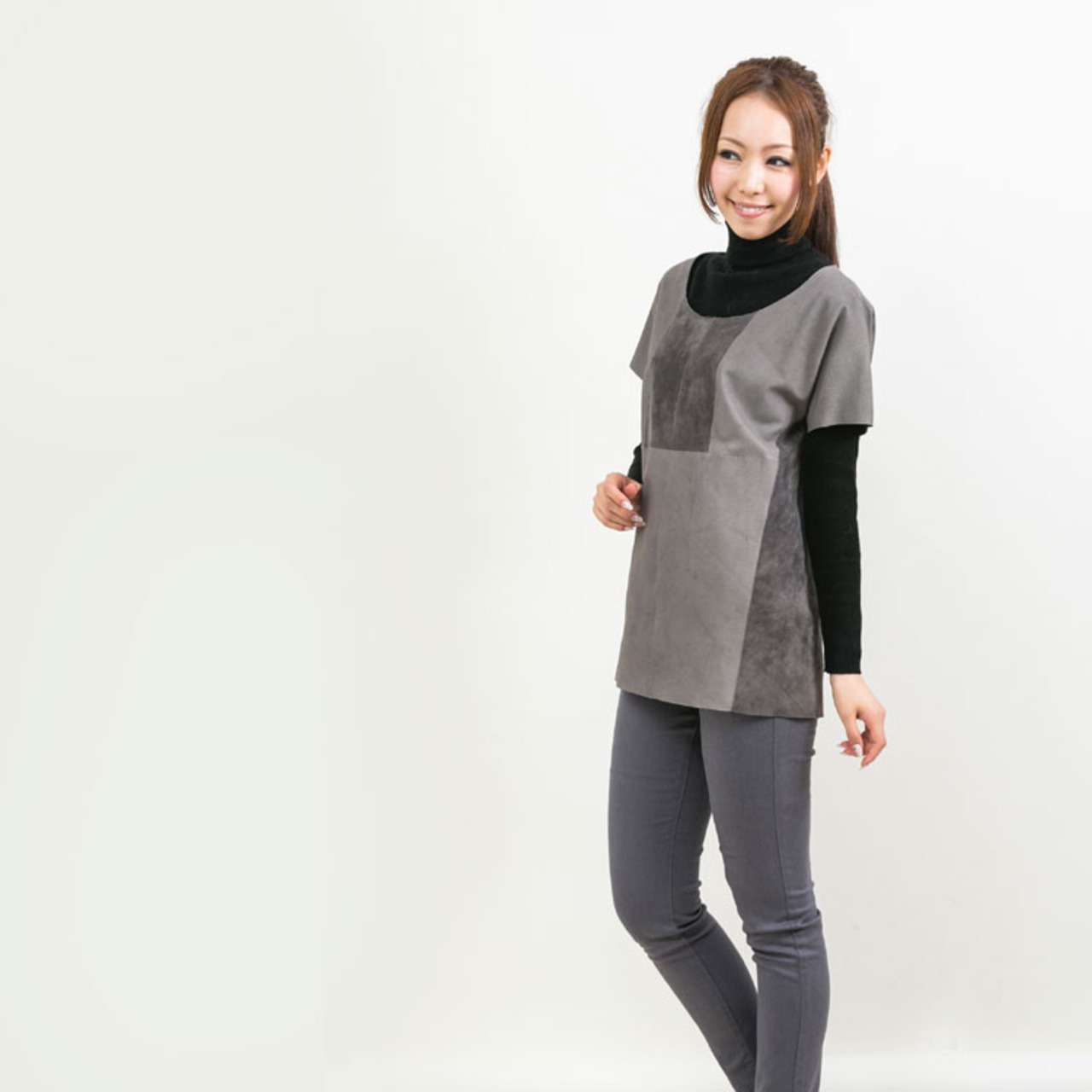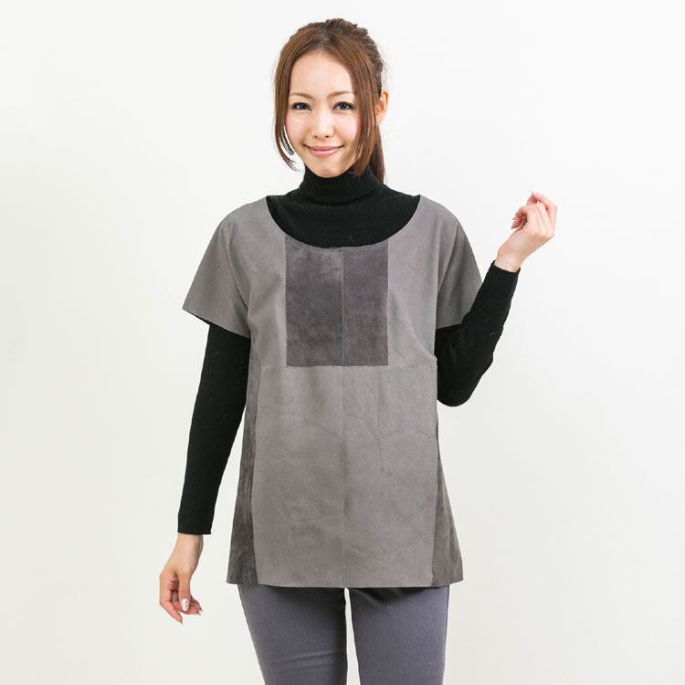 母の日 / ギフト / プレゼント / スエード加工による見た目も柔らかいピッグレザーを使用したシャツです。パッチワークを活かした配色もオシャレです。