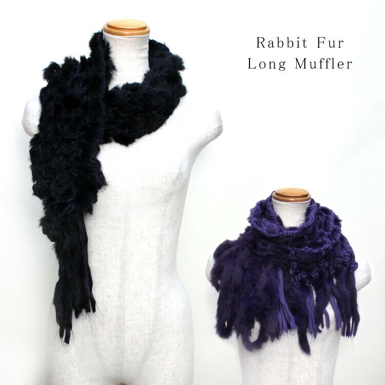 4AX161A アクリル ・ ラビット ファー ロング フリンジ マフラー レディース ギフト プレゼント