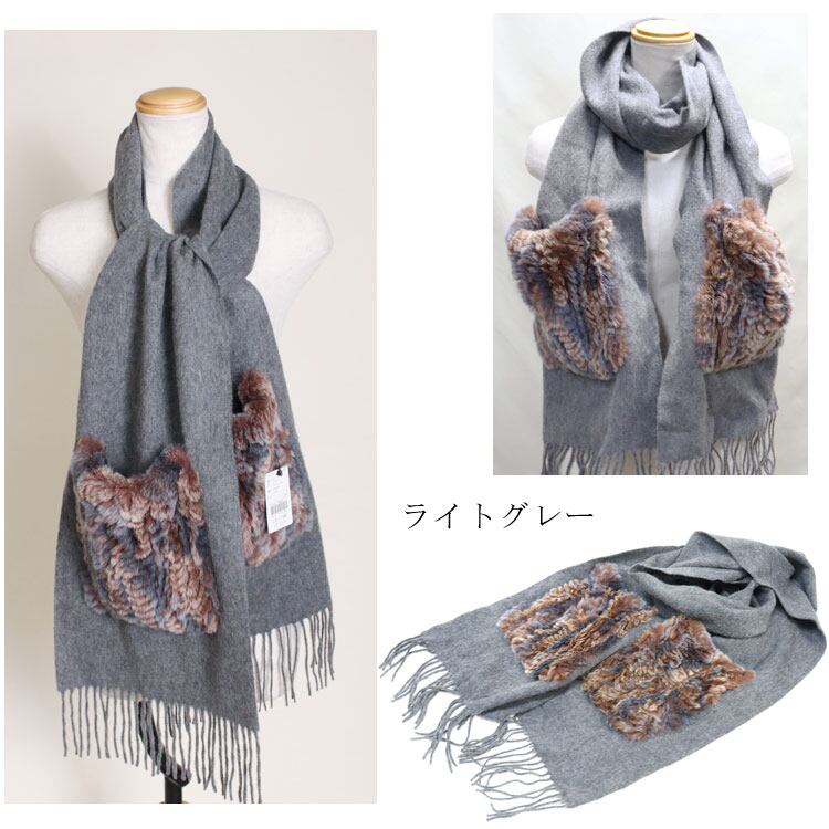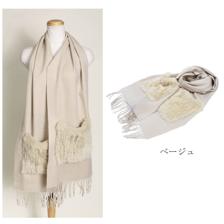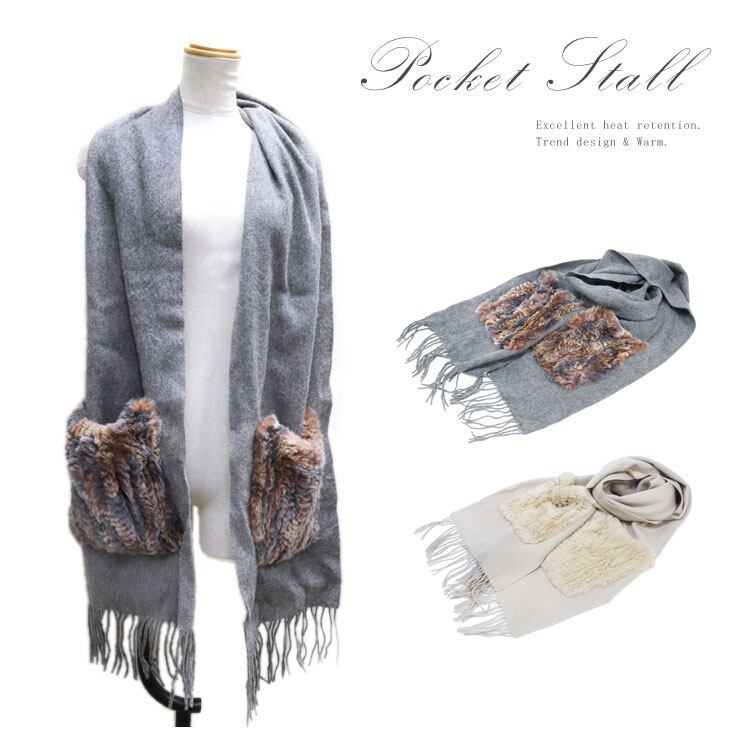 カシミヤ 10%混 ラビット ファー ポケット ストール マフラー レッキスラビット リアルファー ポケット付きマフラー 送料無料 レディース ギフト プレゼント