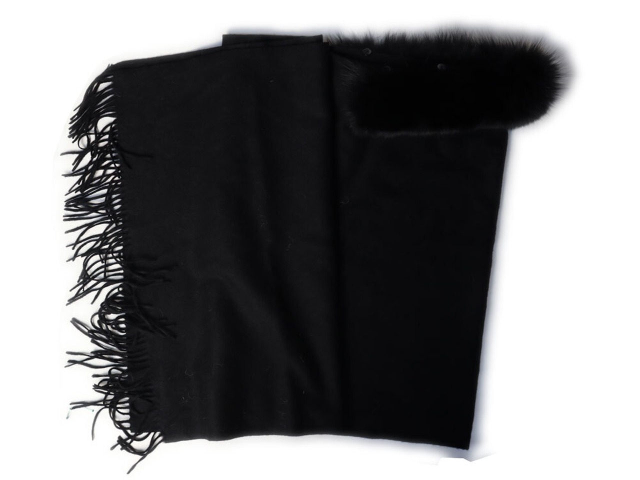【サイズ(最大部を計測)】ストール200cm×63cm / 衿ファー55cm×12cm 【重さ】約400g 【留め具】衿とストールの留め具としてボタン5ケ所 【裏地】ファー付け衿部のみ有り 【素材】カシミヤ30、フォックス