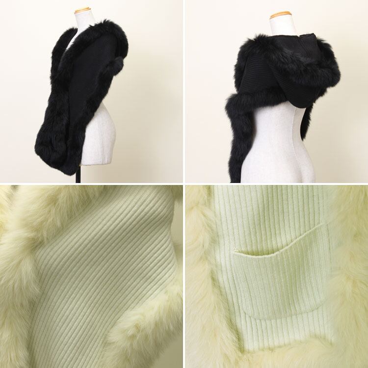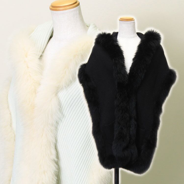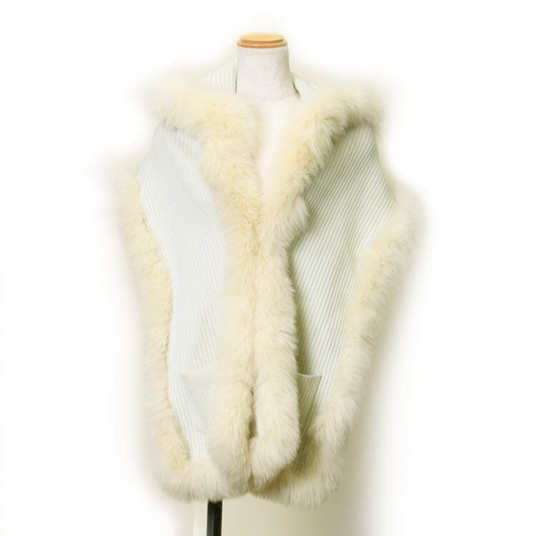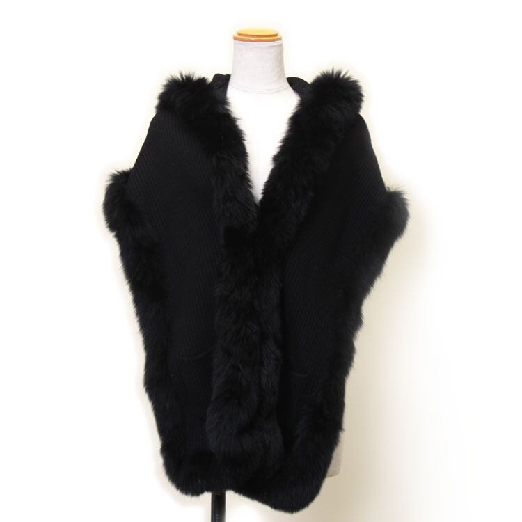 フォックス ファー トリミング ウール ニット ストール フード付 カグール 送料無料 レディース ギフト プレゼント