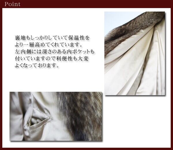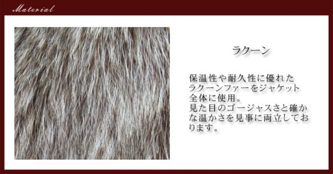 母の日 / ギフト / プレゼント / セール / 敬老の日 / 深めの色合いのナチュラルカラーを使用したラクーンジャケット。厚み・ボリュームがあり、その高級感はもちろん防寒性も非常に高いジャケットです。留め具はボタン仕様。前合わせを左右どちらにも変更可能です。ポケットも左右有り。内側には胸ポケットが1つ。