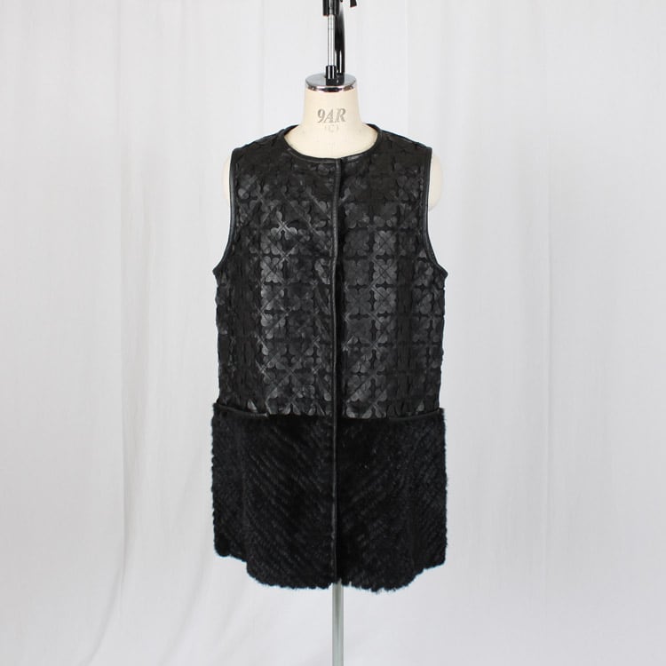 母の日 / ギフト / プレゼント / カットワークされた、しなやかなラムレザーとミンクファーのベスト。しっとり柔らかで上質なラムレザーをフラワーモチーフであしらい、さらにミンクファーで切り替えたなんとも贅沢なベストです。裏はラビットファーをライニングし、保温性も高いです。