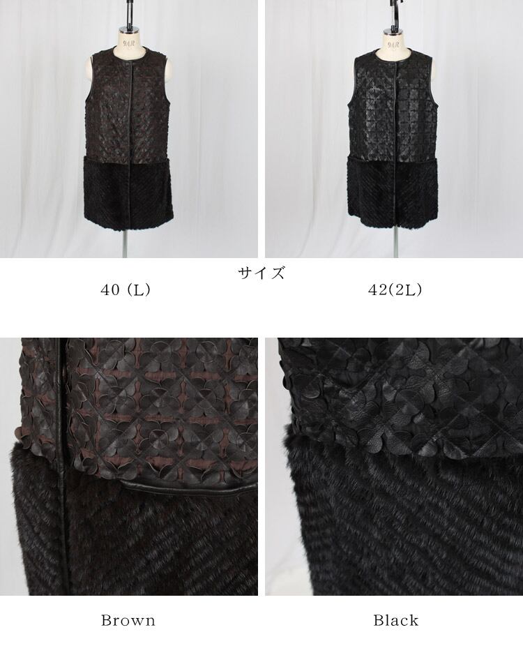 カットワークされたしなやかなラムレザーと、ミンクファーのベスト。 ブラック ブラウン 送料無料 レディース ギフト プレゼント