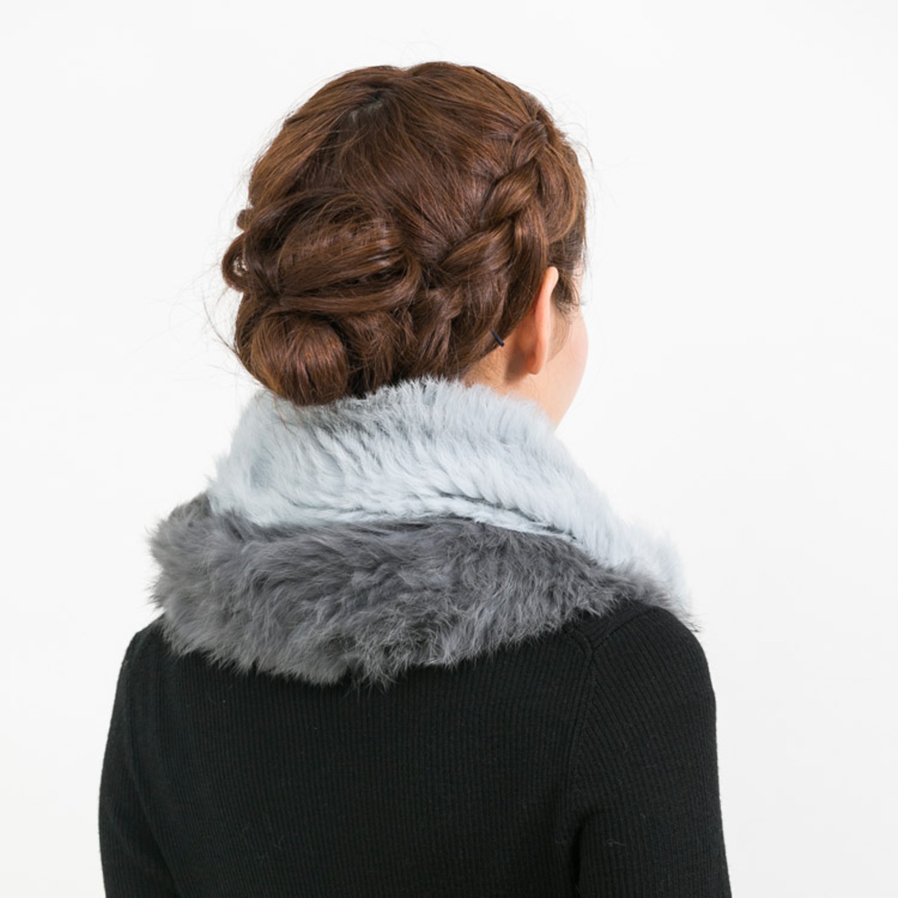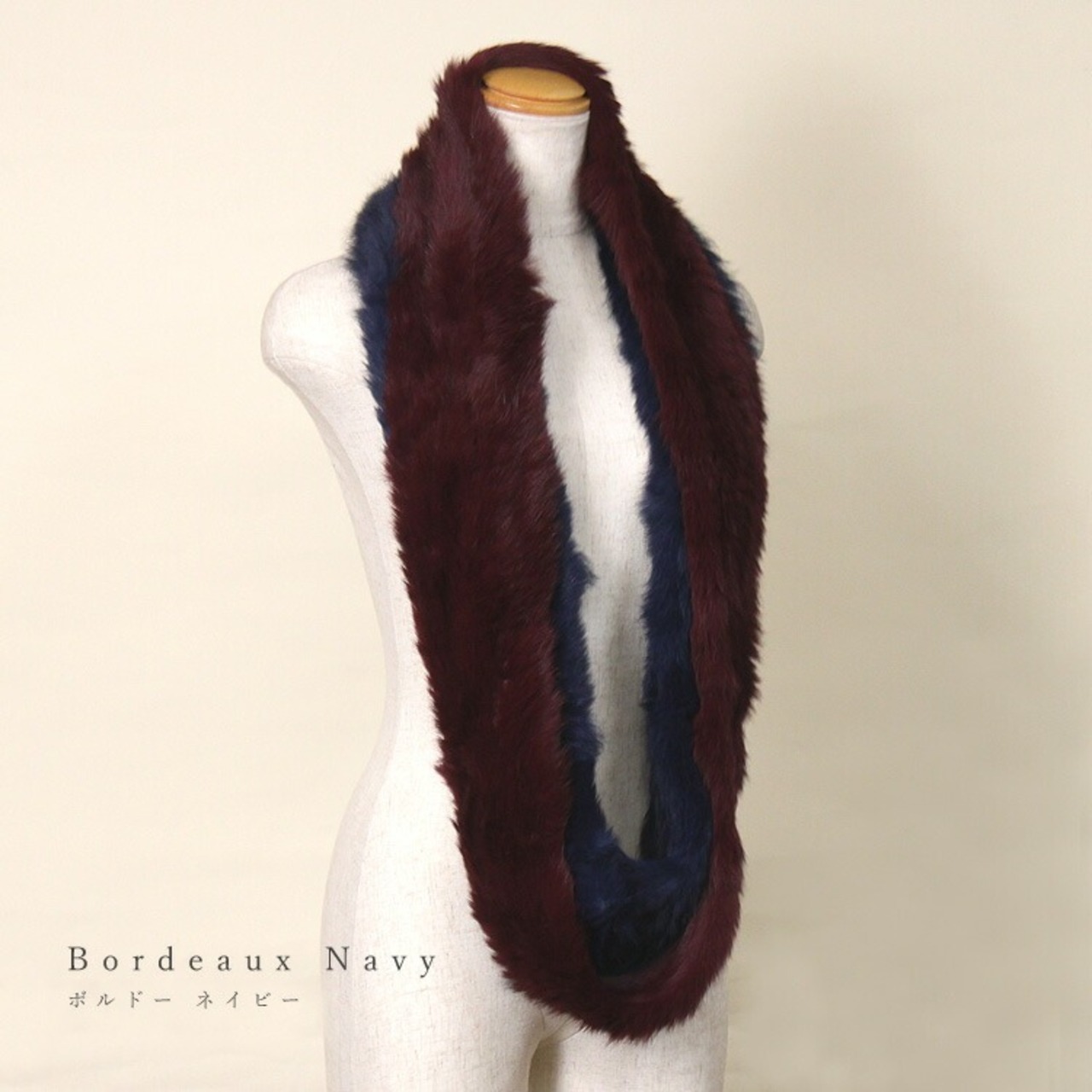 母の日 / ギフト / プレゼント / セール / 敬老の日 / テープ状のラビットをたっぷり編み込んだロングファースヌードです。ニッティング(編み込み)の特徴はなんといっても、その柔らかさと軽さ。着け心地が良いのはもちろん、ドレープが効いていて優雅なシルエットになります。2重巻きも可能なサイズ。半々で色合いの違う配色も個性的です。