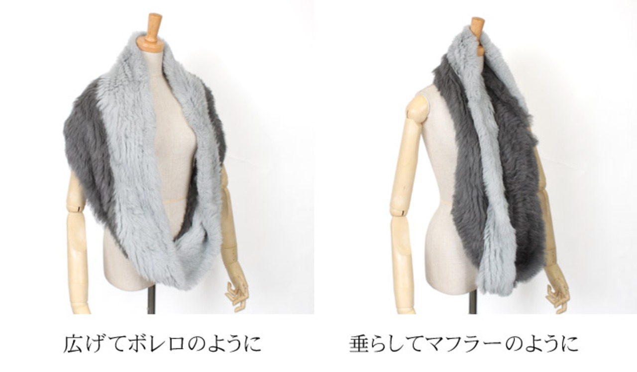 ラビット ファー 編み込み ロングスヌード ツートンカラー バイカラー マフラー レディース ギフト プレゼント