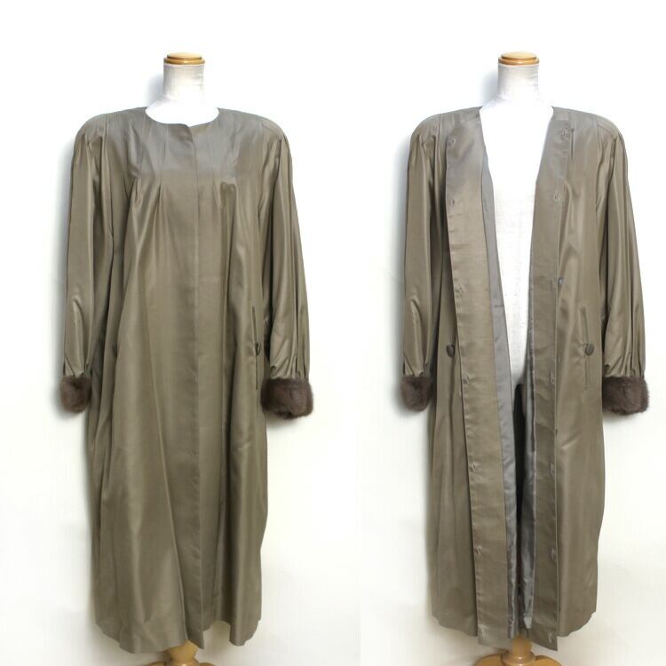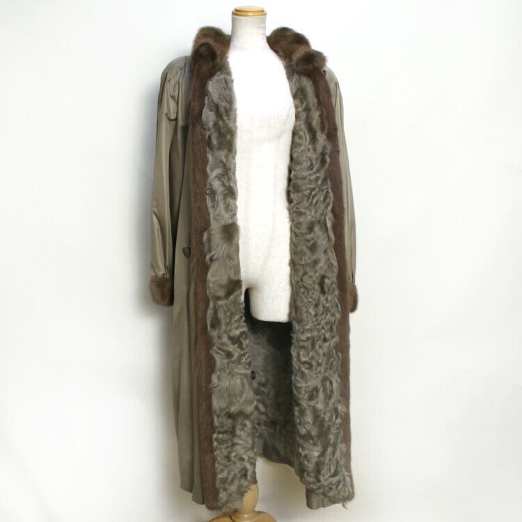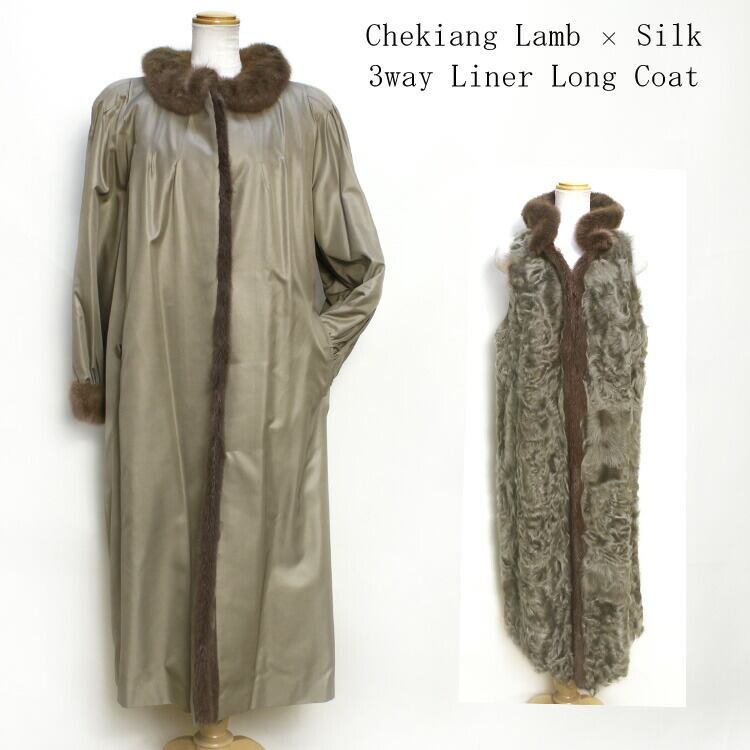 5EXX1IAGB1036 チキャンラム ファー ライナー ・ ミンク ファー 襟 シルク 3way ロング コート ベージュ スプリングコート 送料無料 レディース ギフト プレゼント