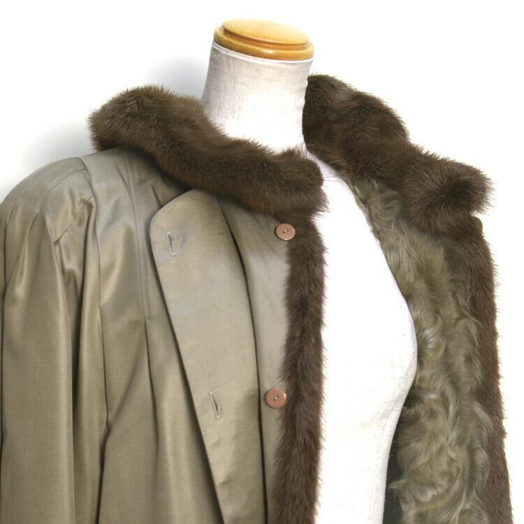 ミンクファーの襟に、ライナーにはカールした毛足が個性的なチキャンラムを合わせたロングコートです。ツヤツヤの毛革が、セレブリティな雰囲気を醸し出してくれます。さらにシルク100%なので、どこから見ても美しい仕上がりに。ボタンで取り外しができる裏地はチキャンラムの総ファー。リアルファーならではの保温性・耐久性は勿論バッチリ。何シーズンでも楽しんでいただけます。パーティーシーンでは取り外したチキャンラムファーを表に着て、ロングジレとしても楽しむことができます。