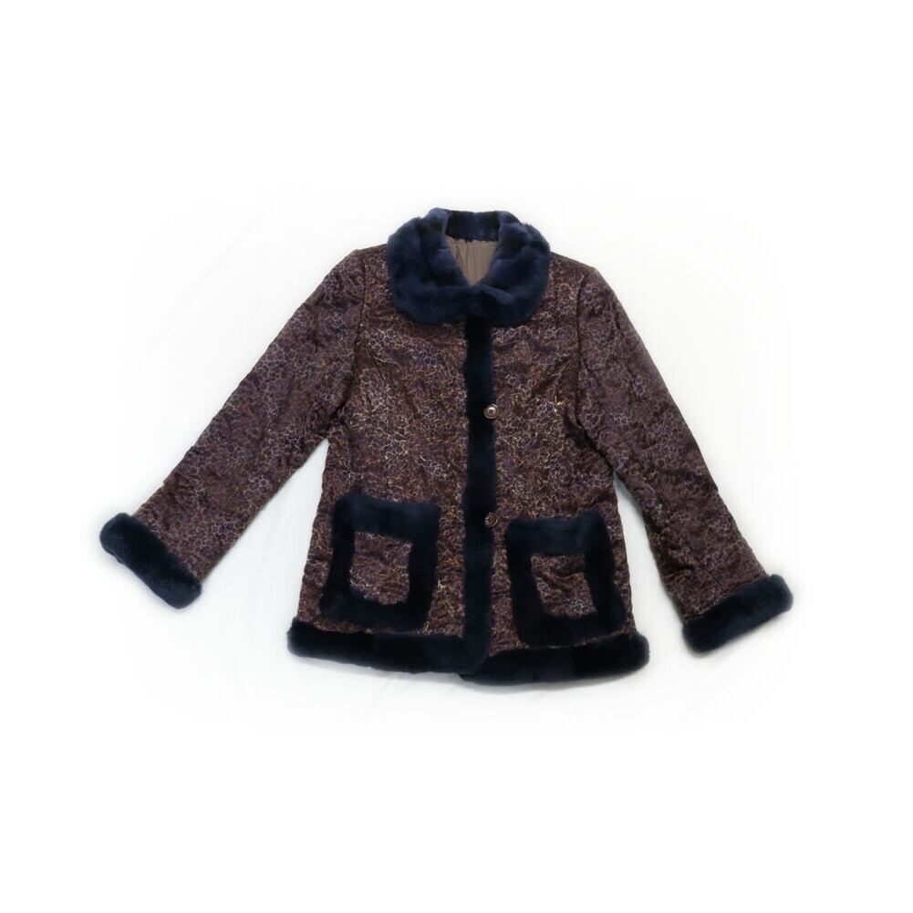 高級素材、ウィーゼルファーがアクセントとなっているジャケット。アニマル柄がやや派手に映りますが、ふわふわのファーを使用することで女性らしく上品な印象に。