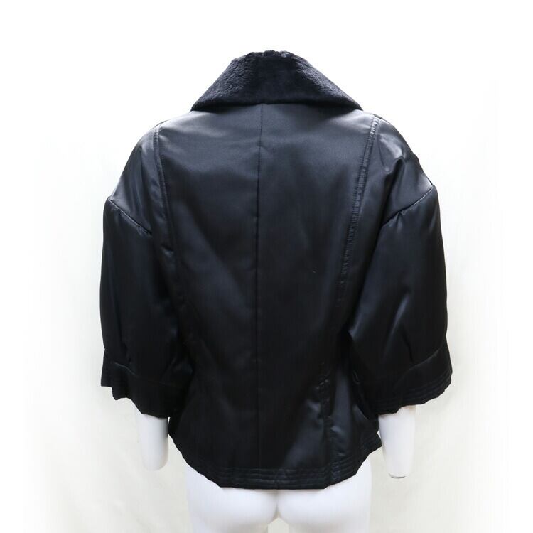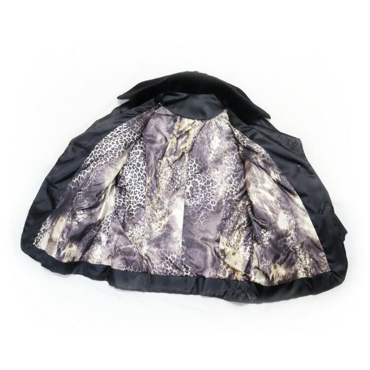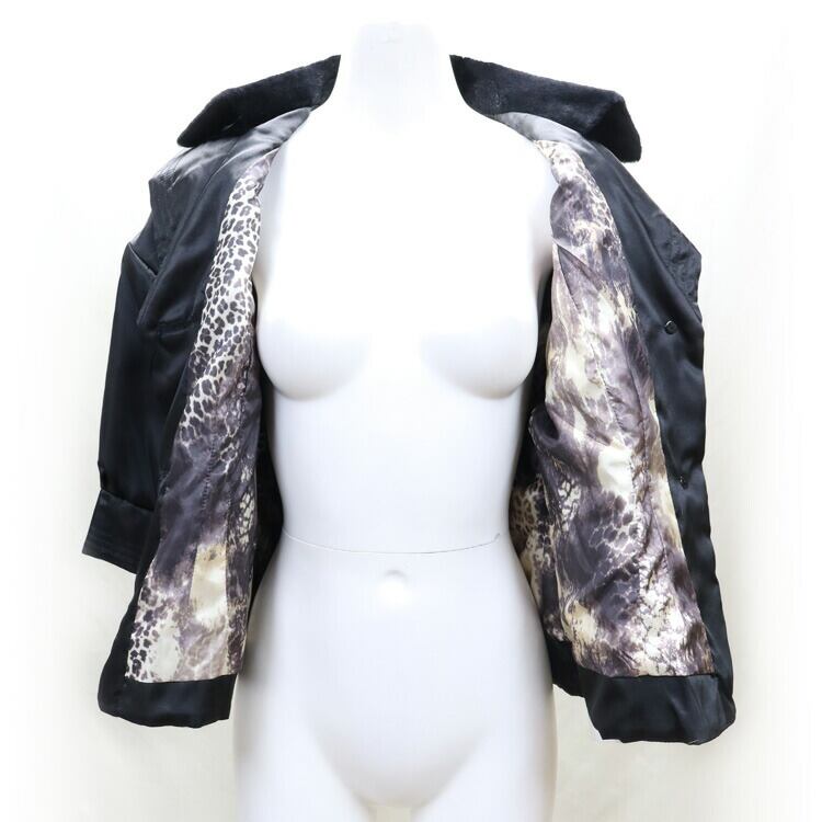 裏地の柄が特徴のとっても軽いジャケット。襟のラビットファーがお顔周りを華やかに。シンプルなTシャツなどと合わせてカジュアルにコーデして、お出掛けやショッピングなど気軽に着ていただけます。