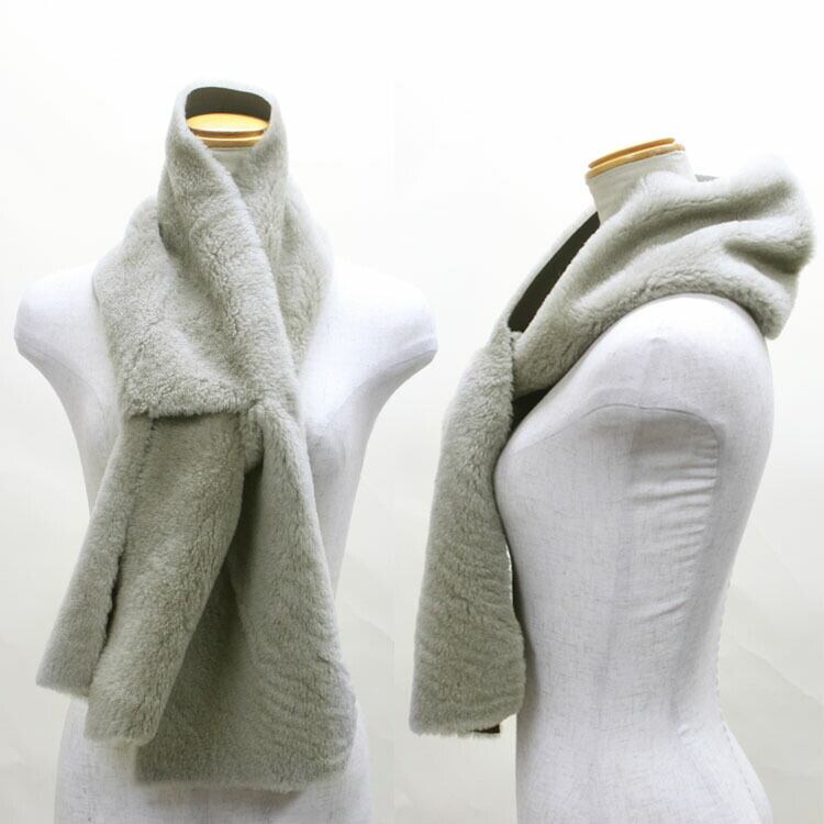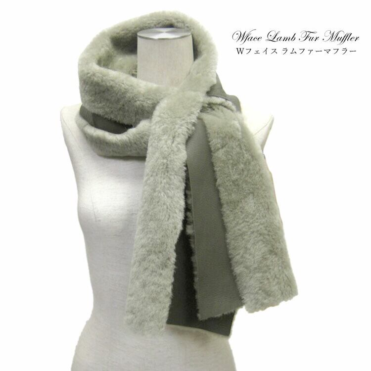 ラム Wフェイス ファー マフラー リバーシブル グレー スリット レディース メンズ